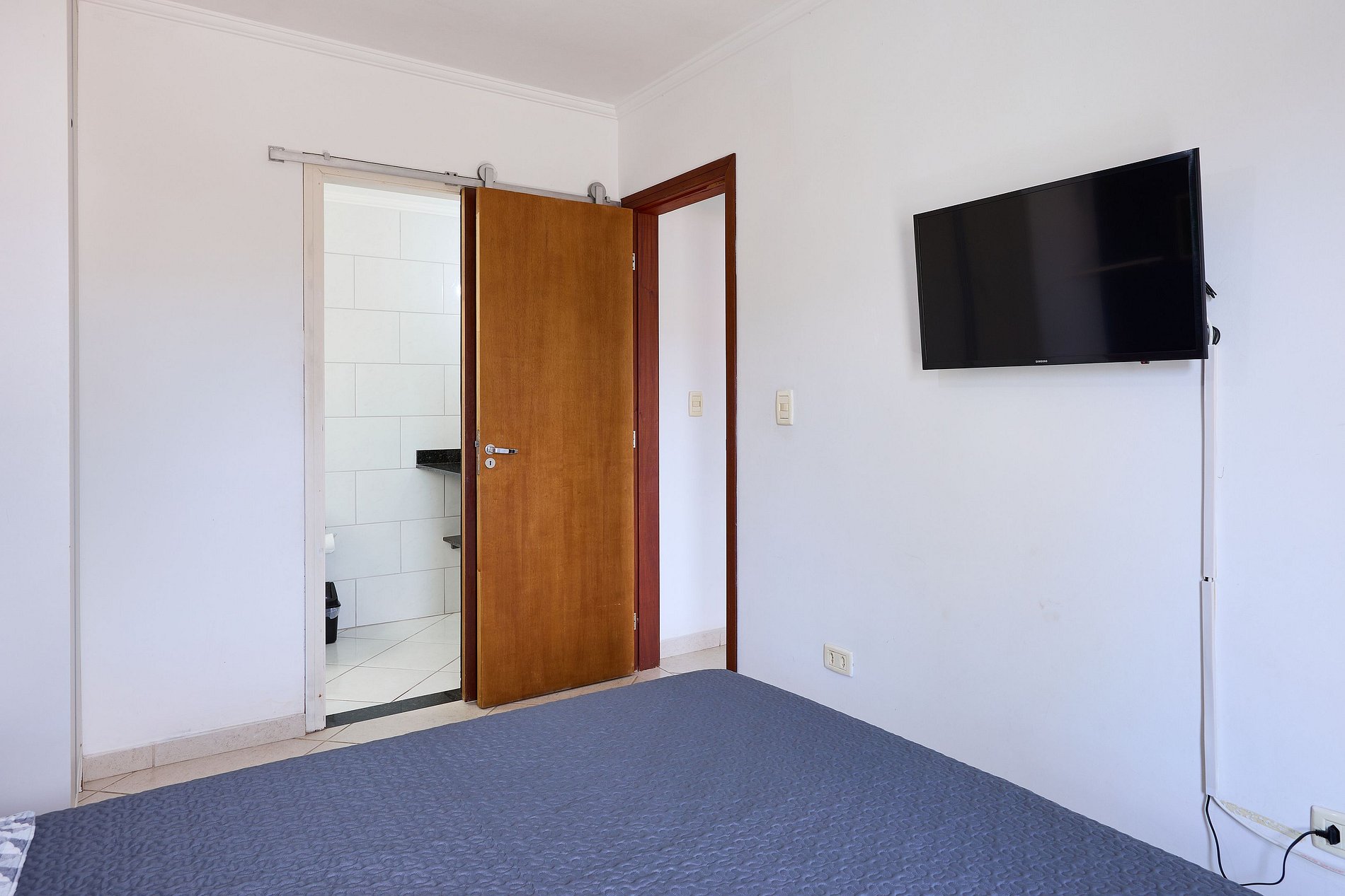 - Suíte com cama queen, smart tv, ventilador de teto, ar condicionado split, armário planejado e banheiro amplo.