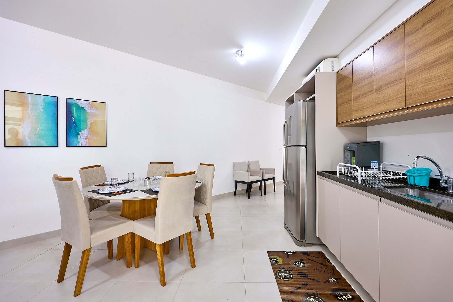 Cozinha completa com louças e utensílios ,air-frye , microondas, liquidificador, cafeteira, cervejeira, geladeira, fogão e forno