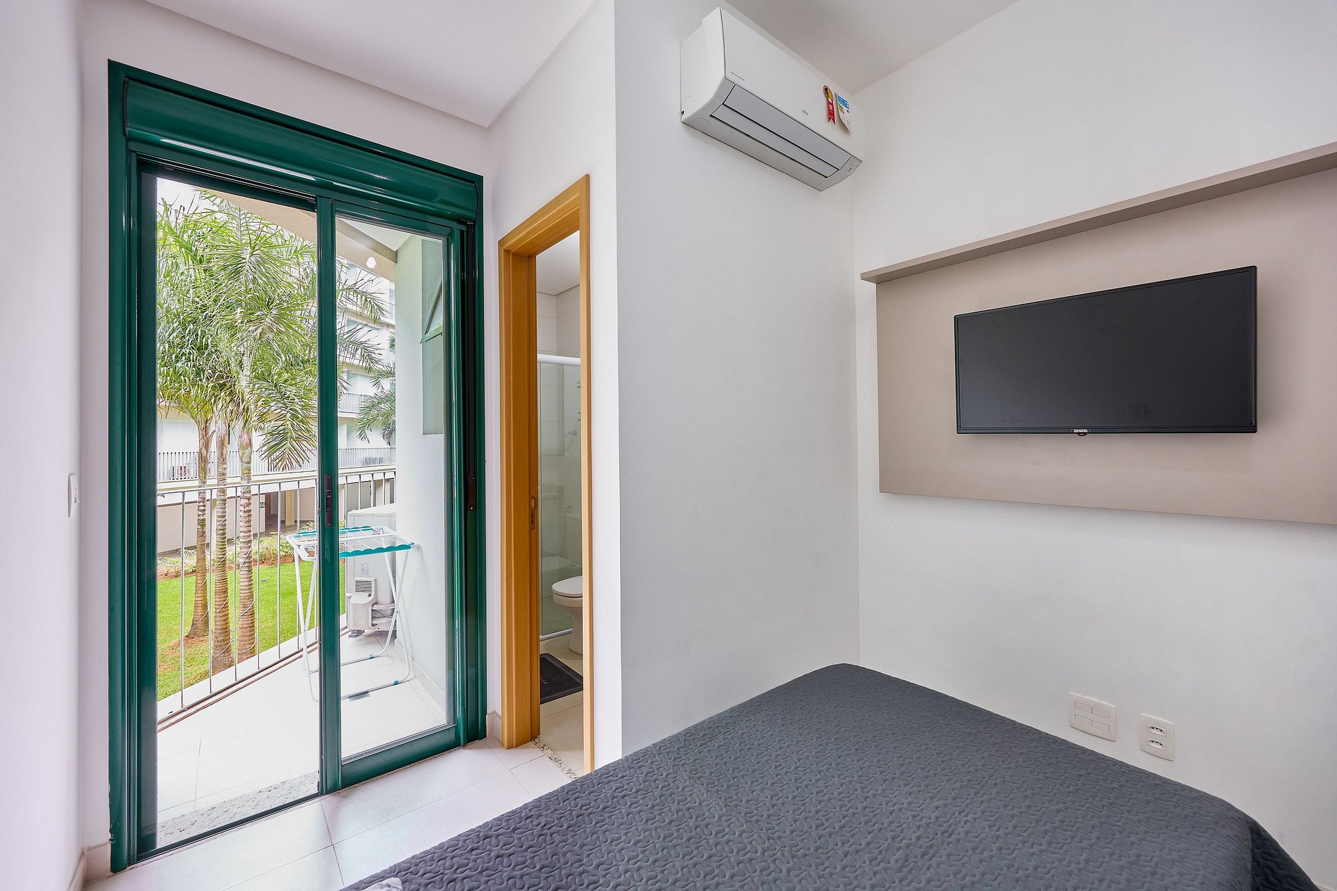 Suíte com cama de casal e solteiro com ar condicionado