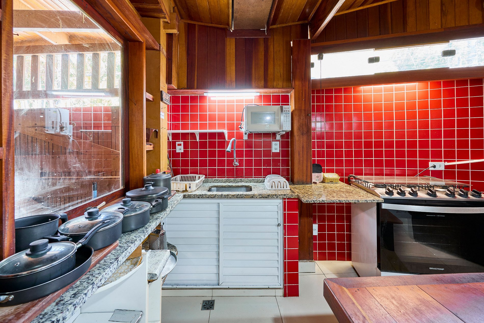* Cozinha completa equipada com geladeira, fogão, micro-ondas, filtro de água gelada e air fryer