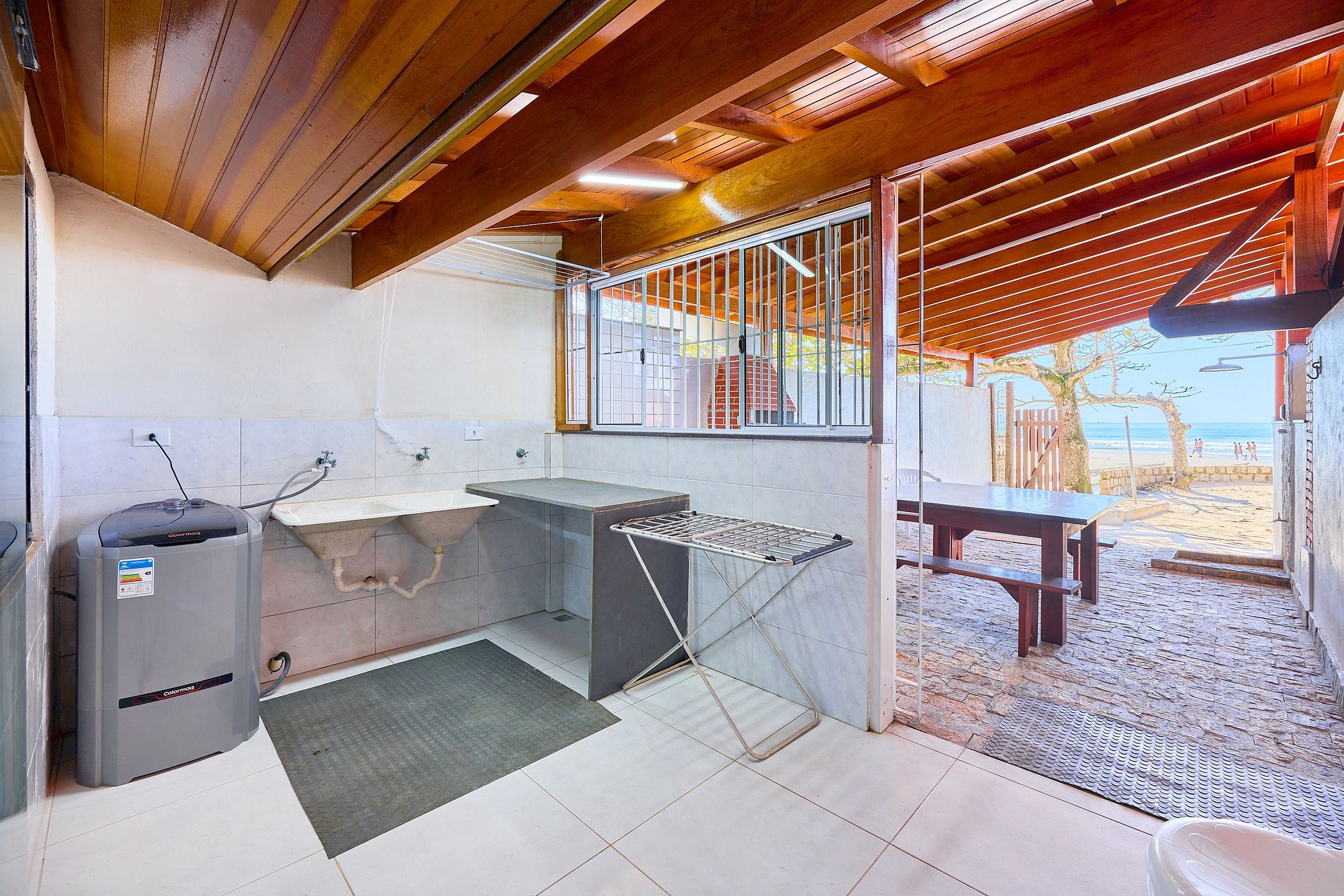 Lavanderia com tanque e máquina de lavar