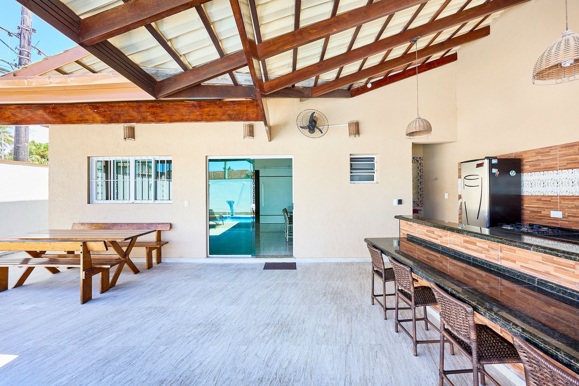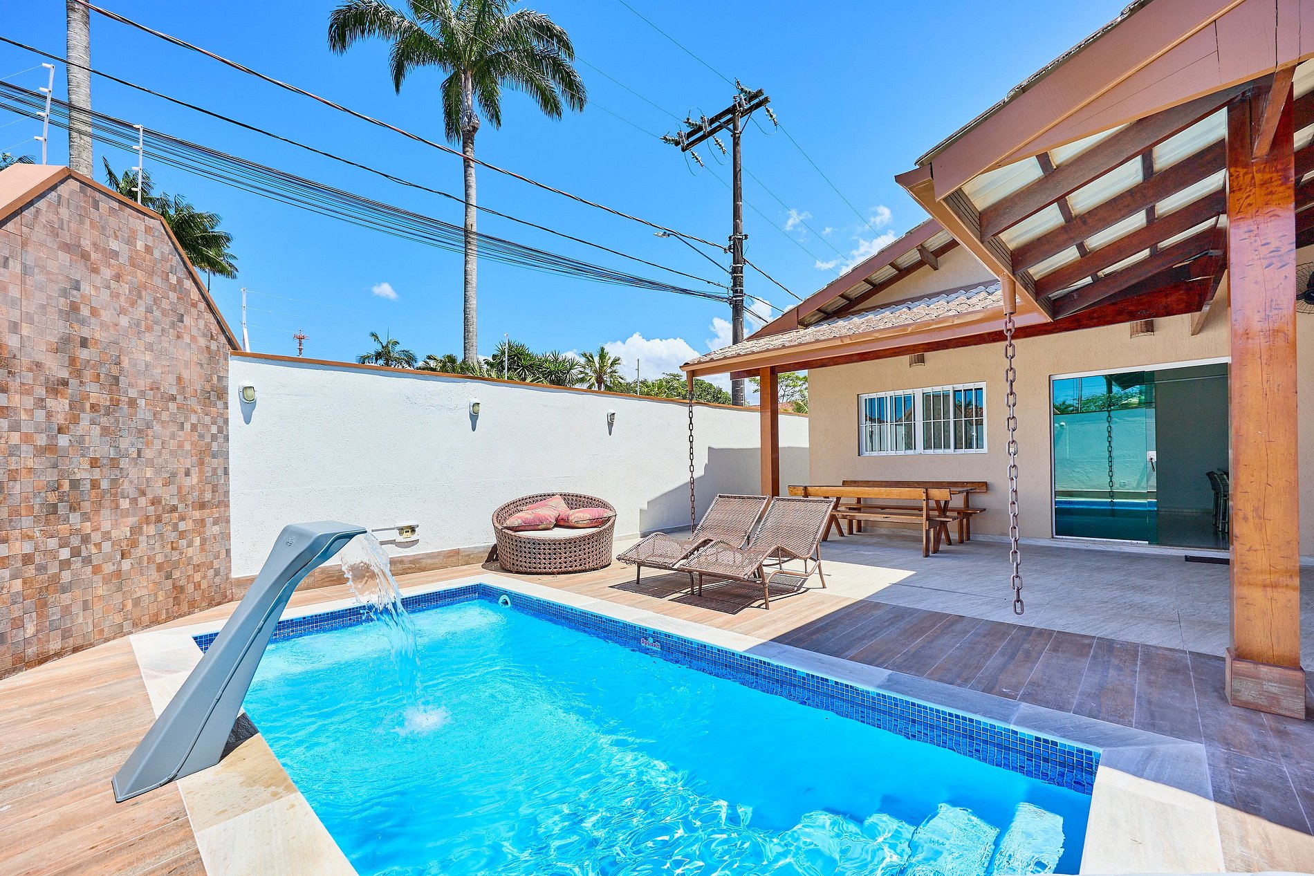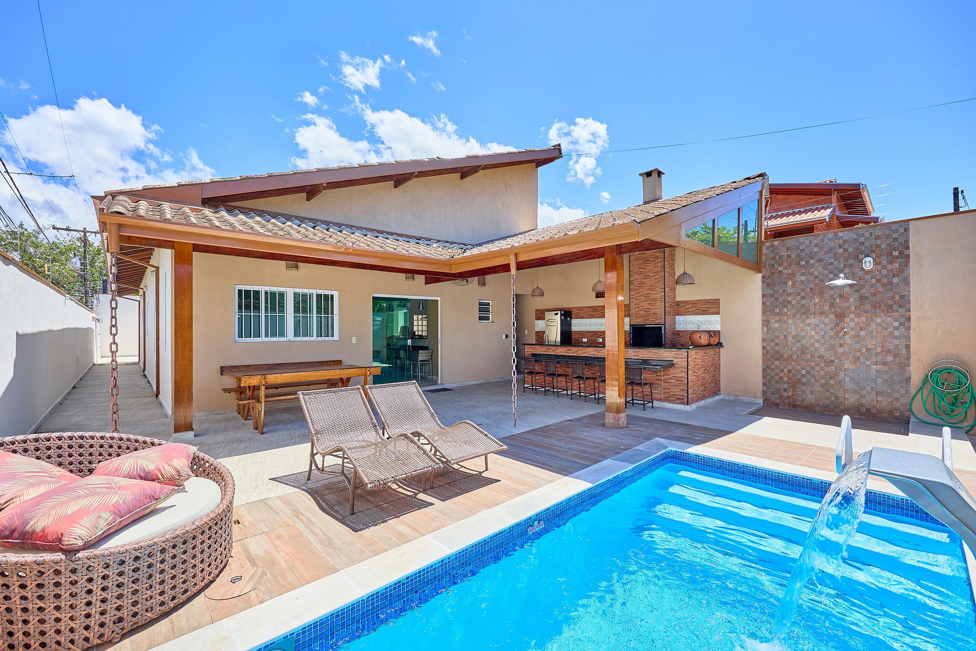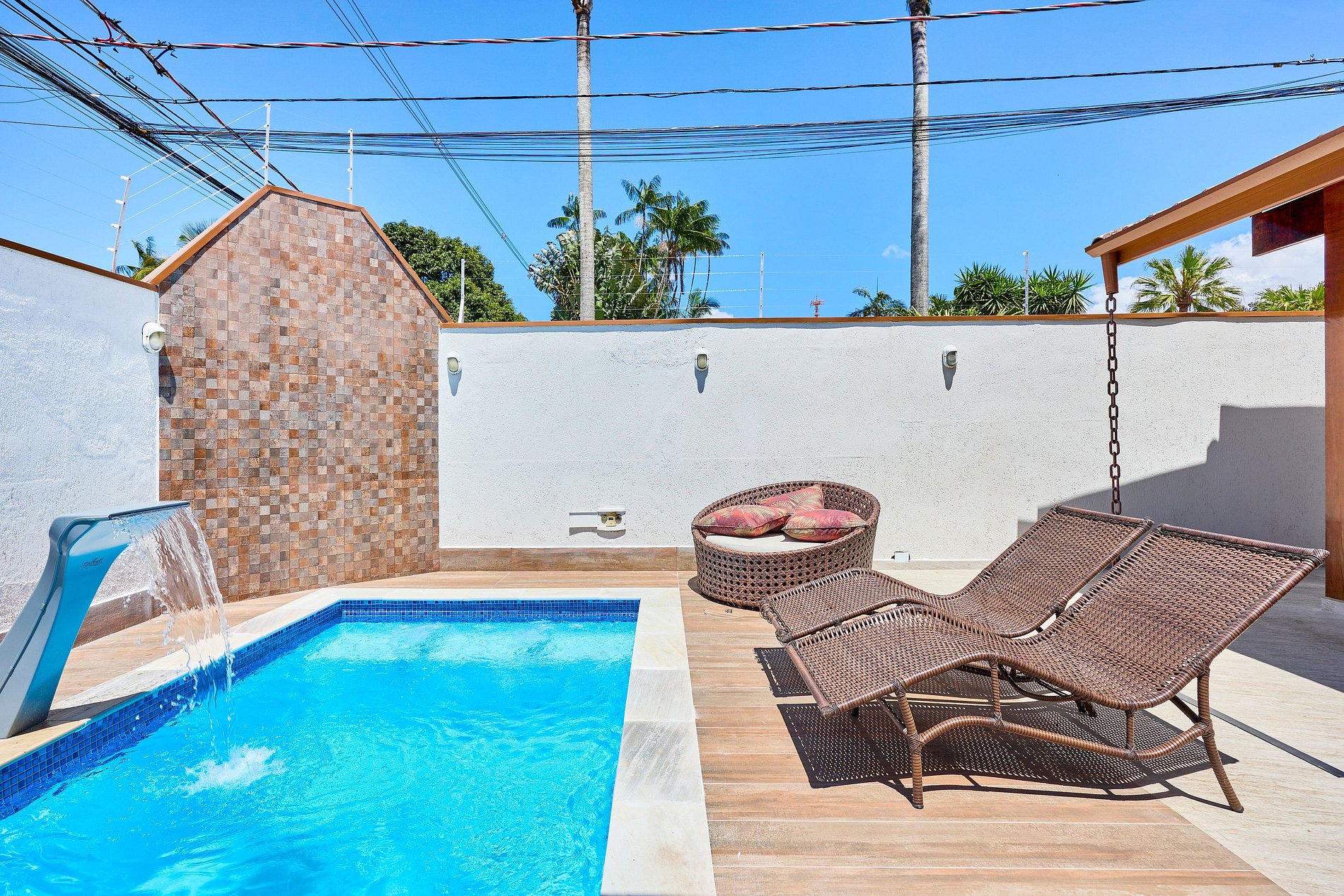 Excelente opção de acomodação próximo a Avenida Guarani e Orla do Itaguá. Acomoda até 16 pessoas em camas. Todas as suítes e quartos possuem ar condicionado split. Para completar, uma sala ampla e cozinha completa junto a um espaço gourmet super confortável com direito a piscina com cascata. Com certeza uma ótima opção para temporada!