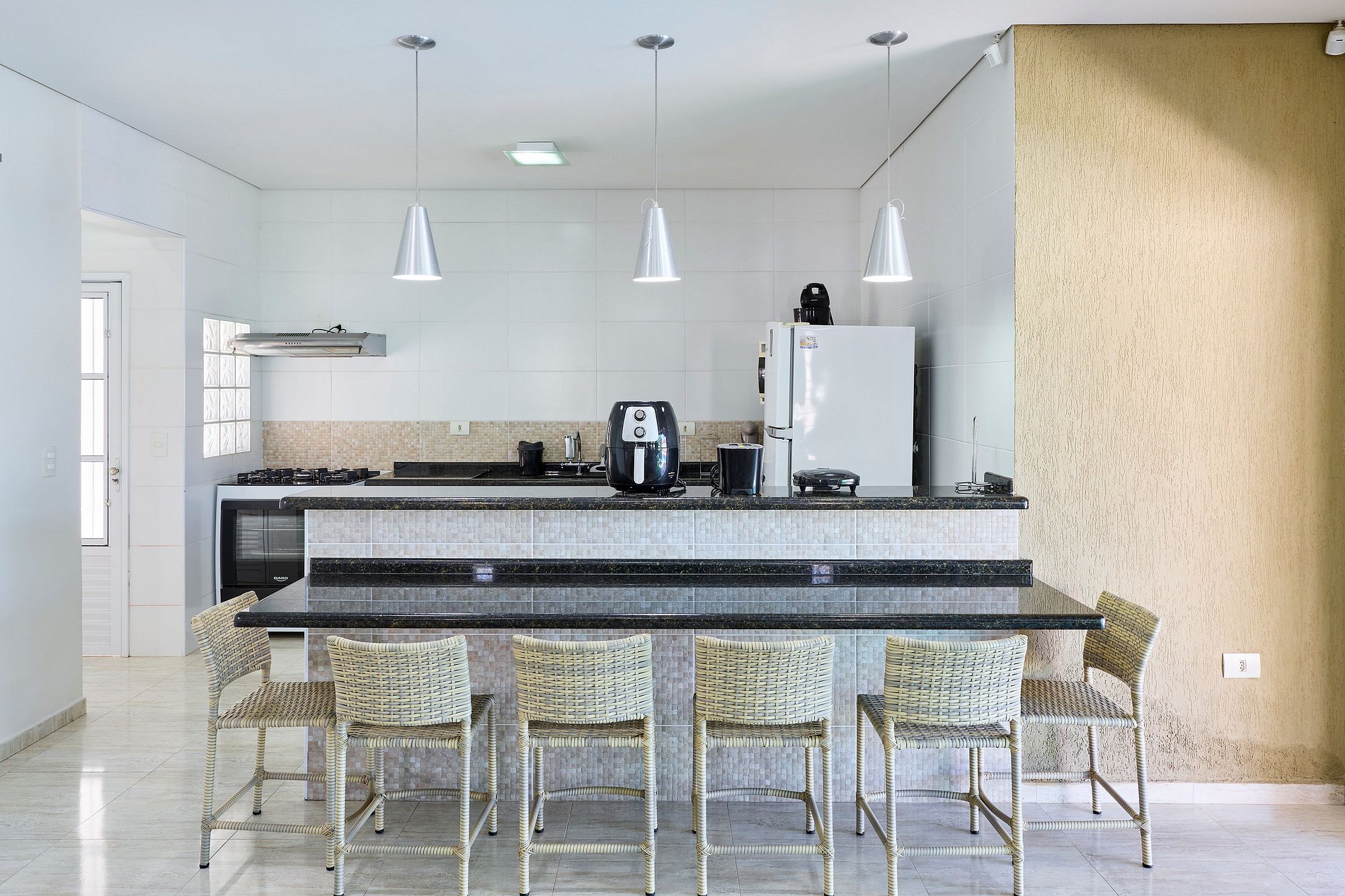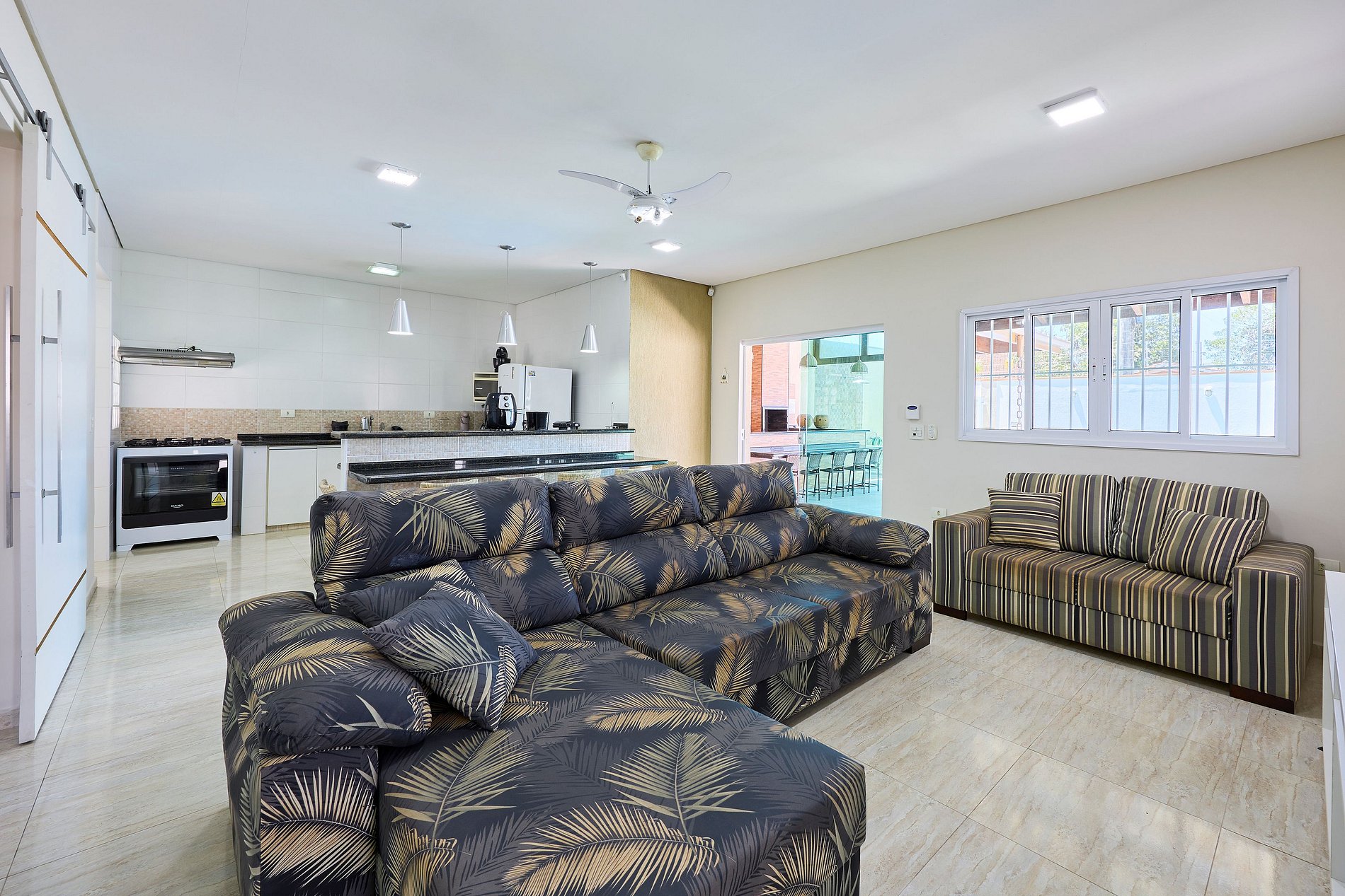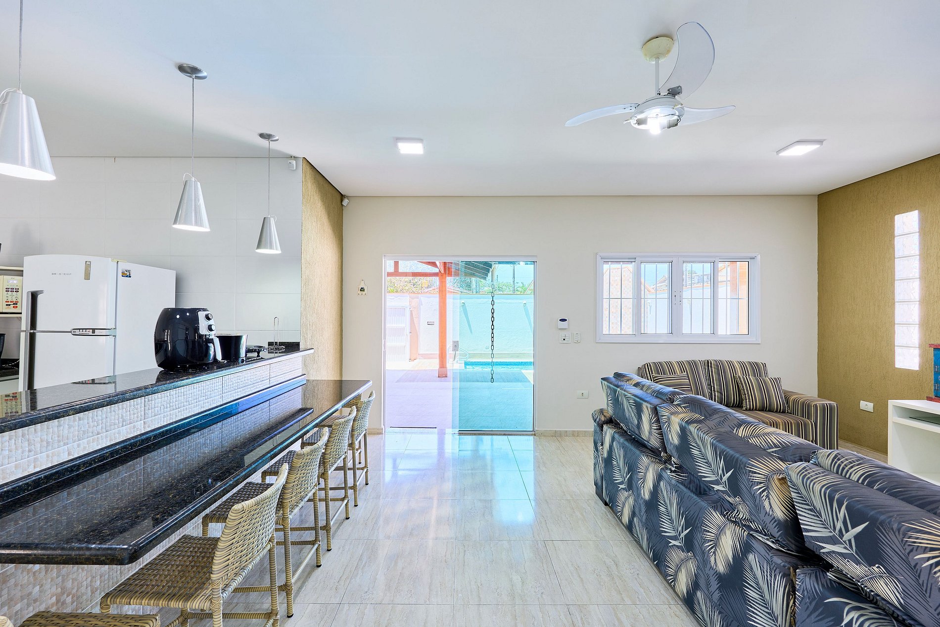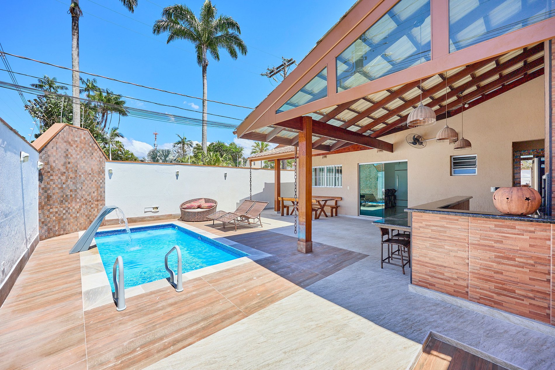Excelente opção de acomodação próximo a Avenida Guarani e Orla do Itaguá. Acomoda até 16 pessoas em camas. Todas as suítes e quartos possuem ar condicionado split. Para completar, uma sala ampla e cozinha completa junto a um espaço gourmet super confortável com direito a piscina com cascata. Com certeza uma ótima opção para temporada!