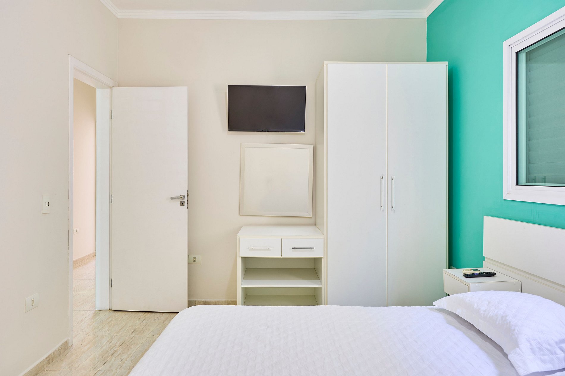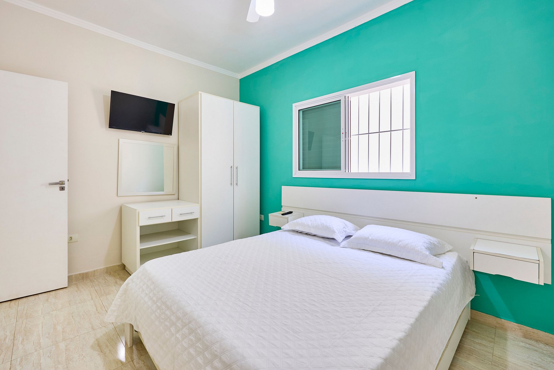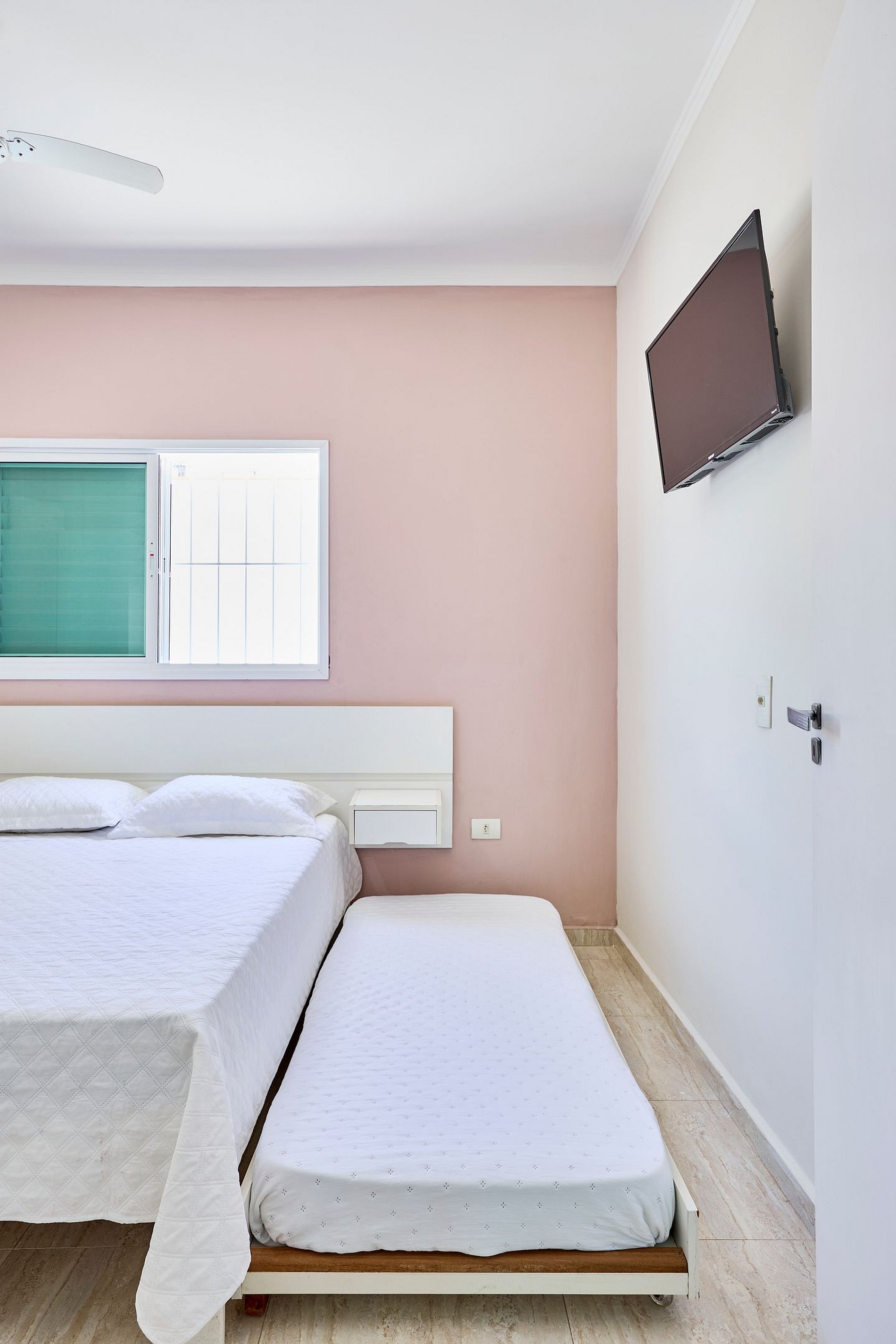 Em todos os quartos disponibilizamos 1 cama quenn com 2 auxiliares embaixo! São 2 suítes e 2 domitórios que contam com um amplo banheiro social!