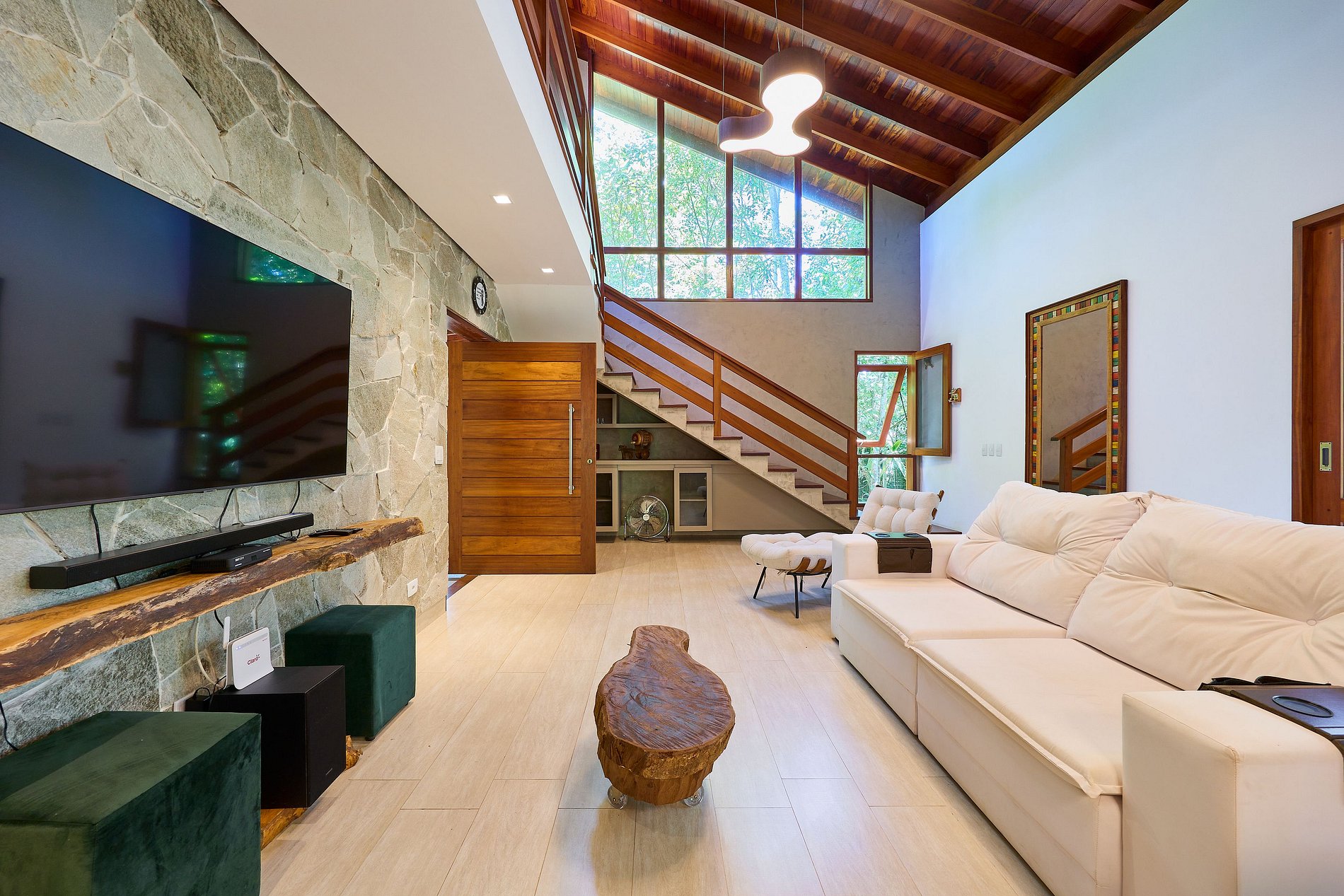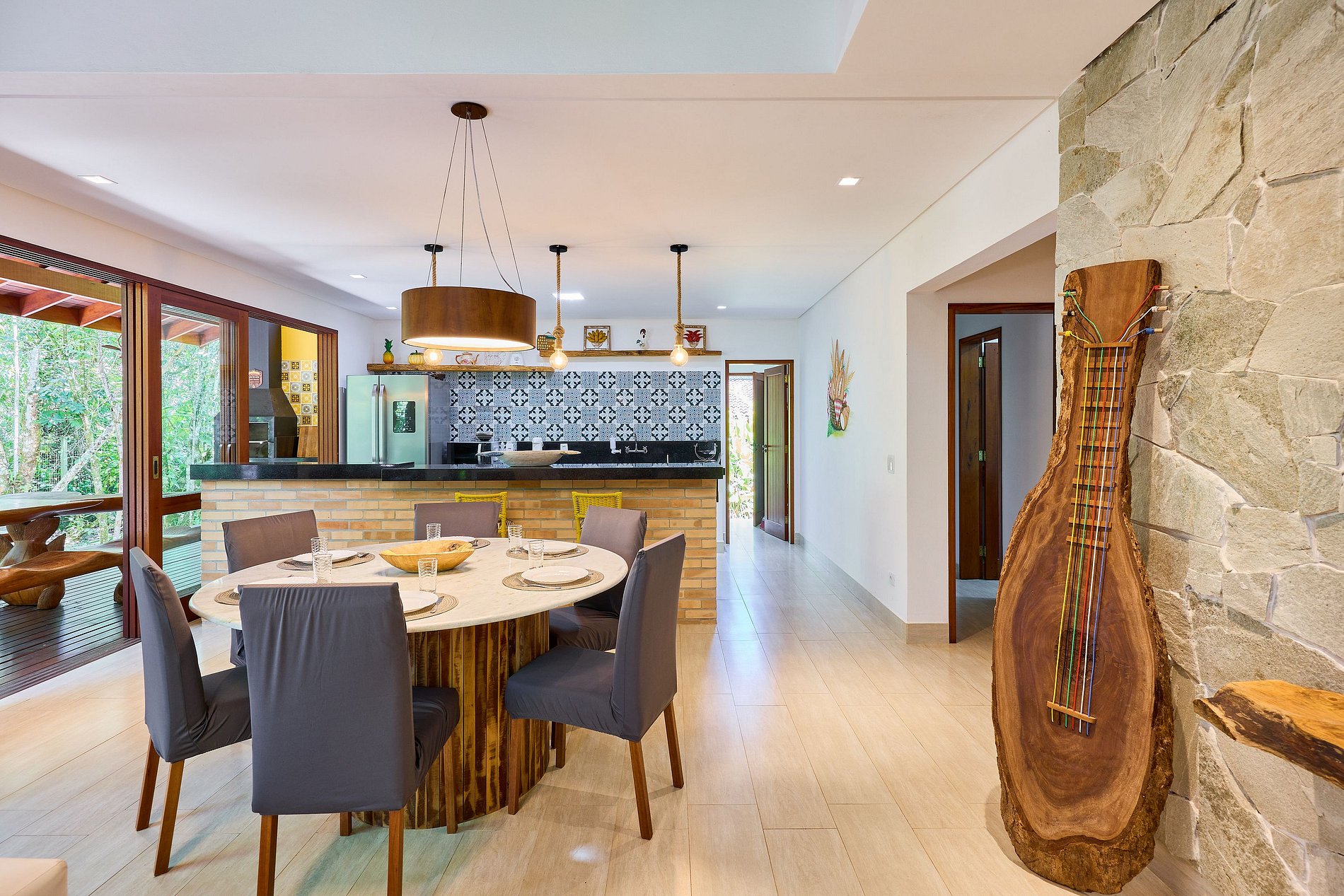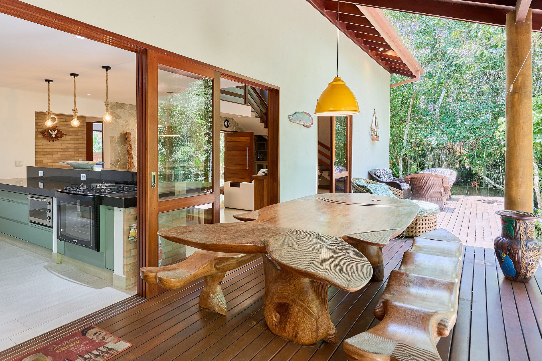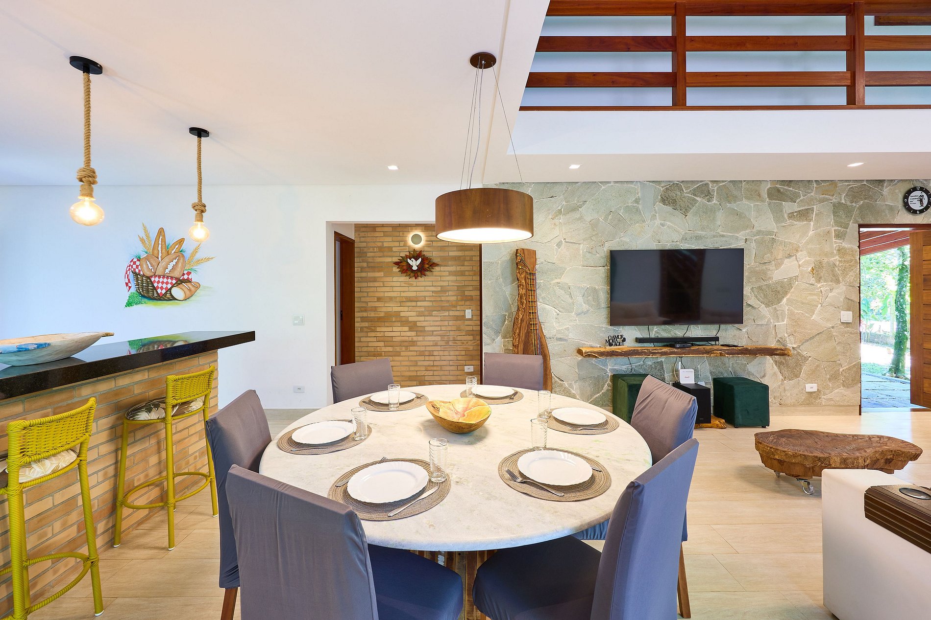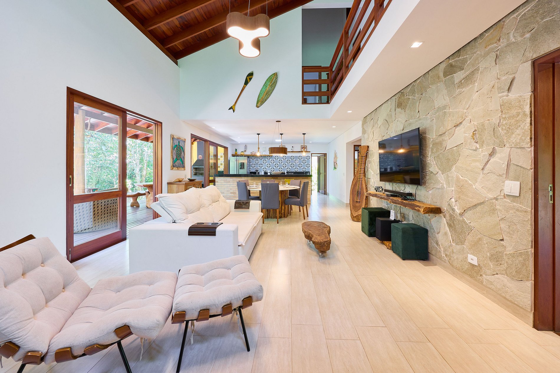 Casa Alto Padrão, linda e a 1 minuto da praia! Totalmente equipada, 3 suítes com ventilador de teto e ar condicionado split. Excelente opção em uma das localizações mais procuradas em Ubatuba!