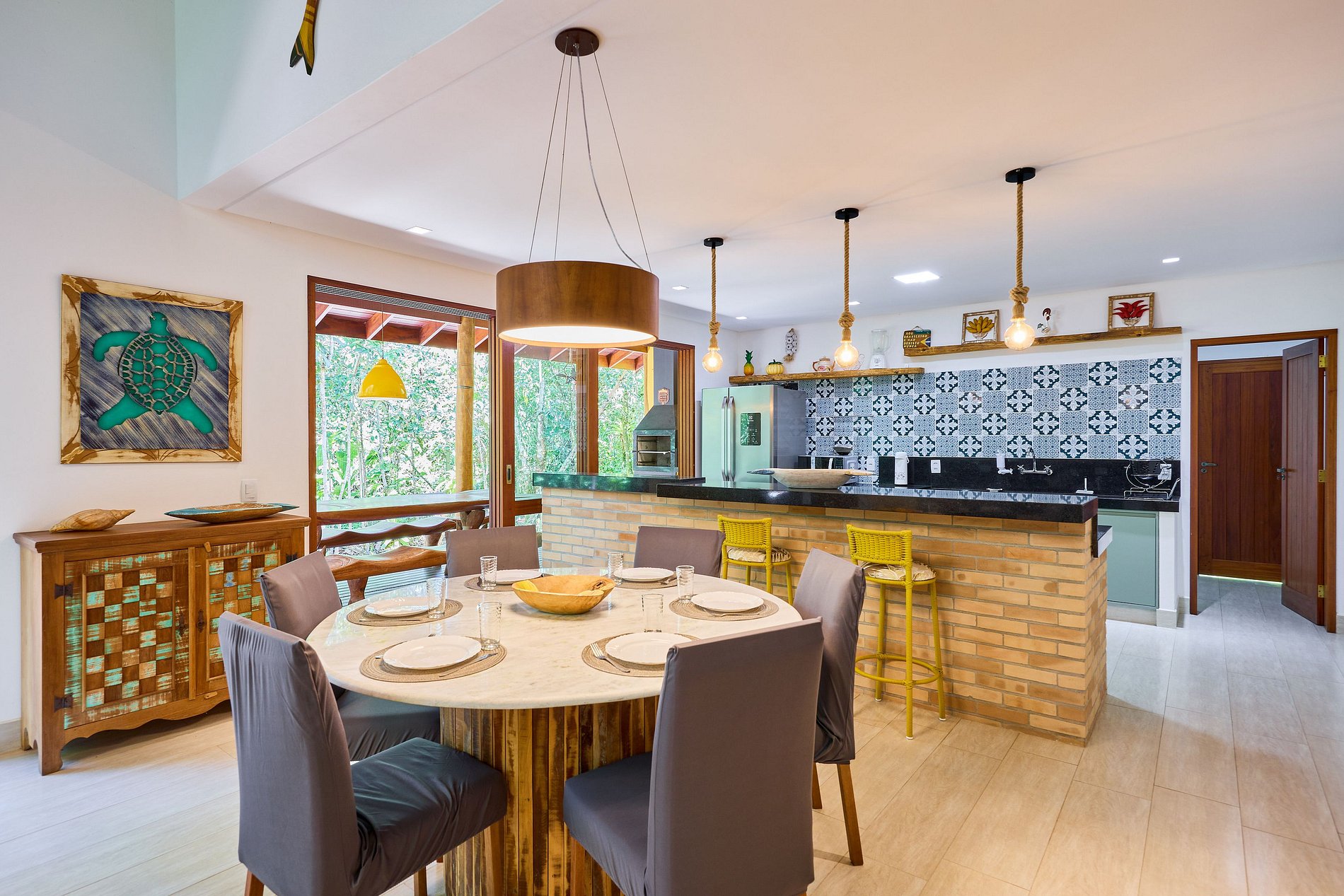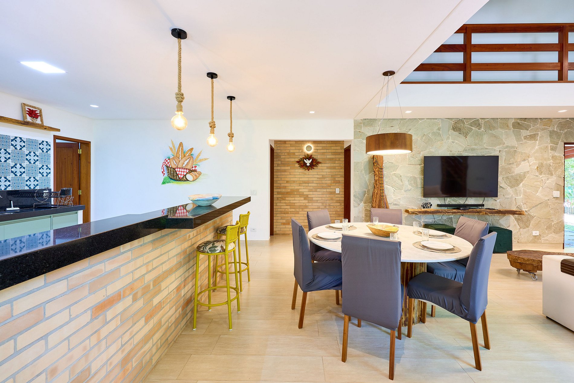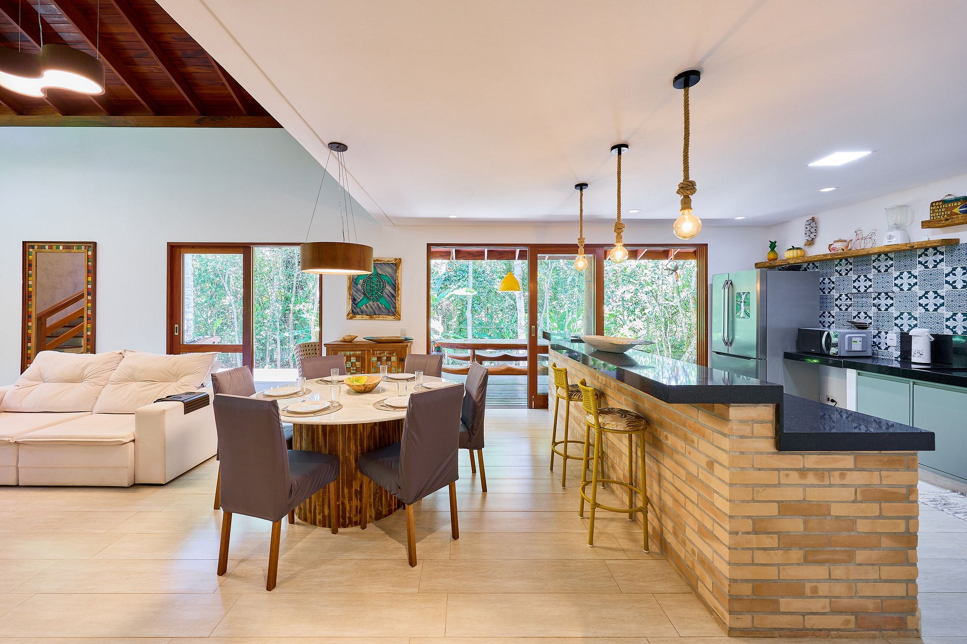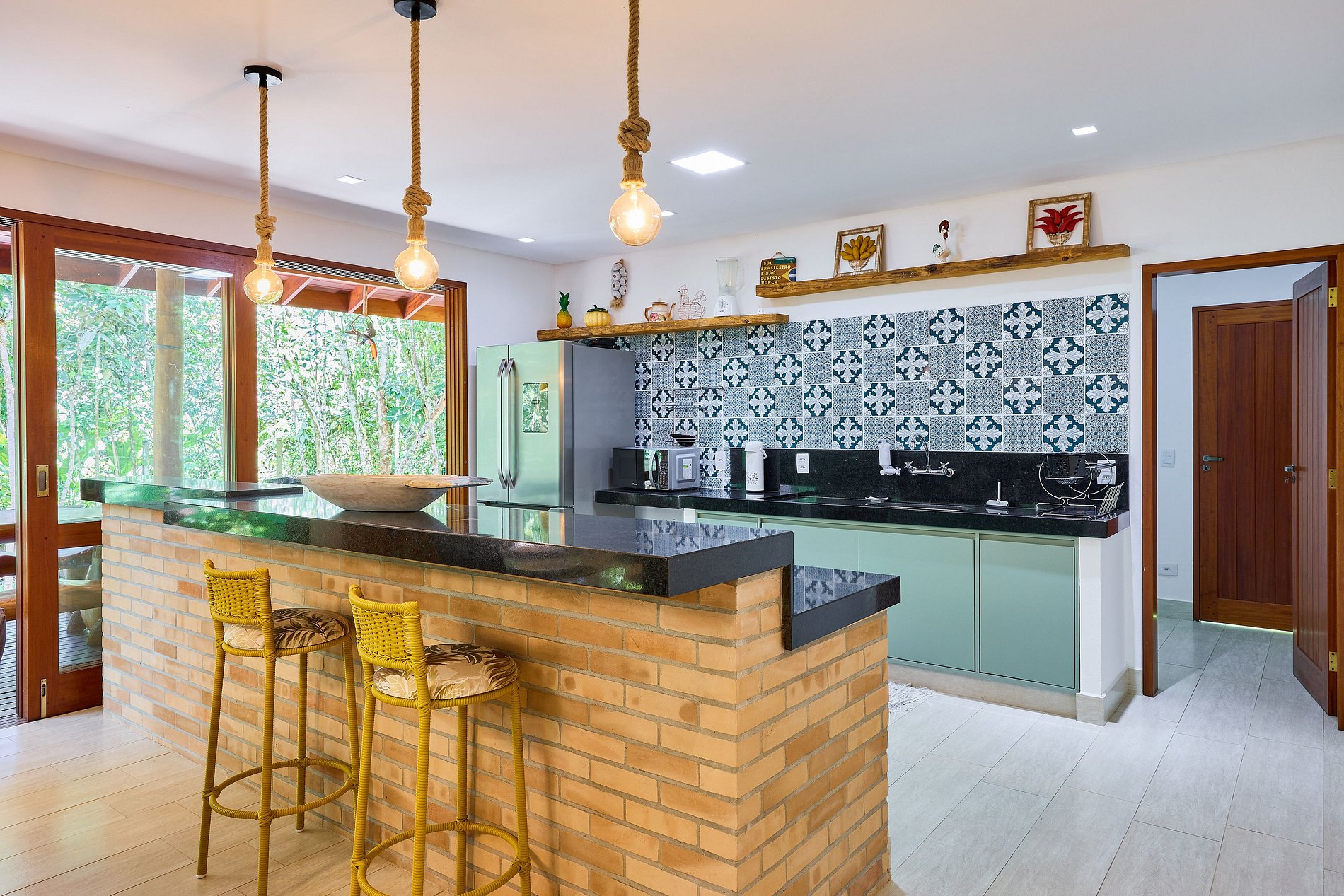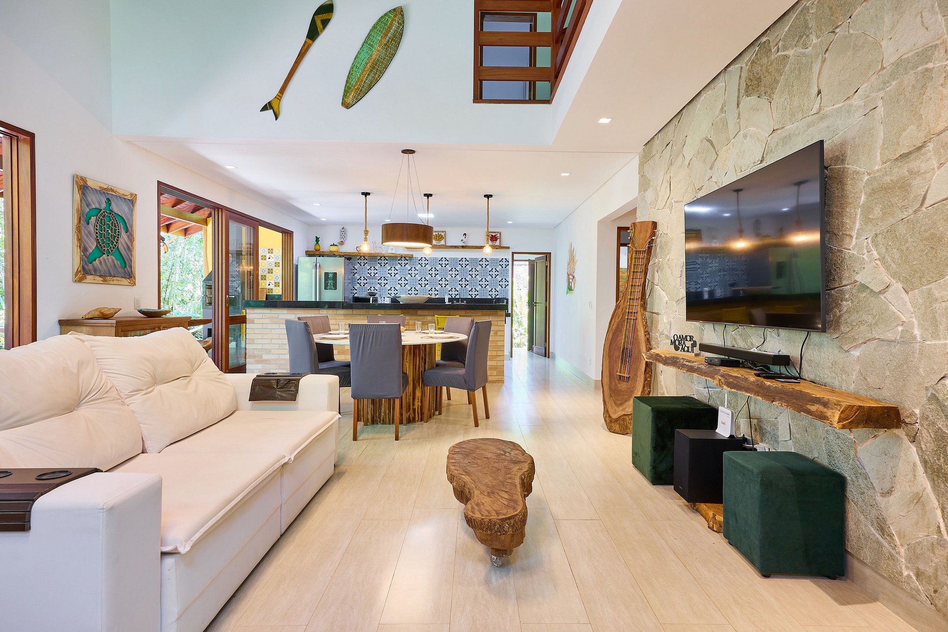 Casa Alto Padrão, linda e a 1 minuto da praia! Totalmente equipada, 3 suítes com ventilador de teto e ar condicionado split. Excelente opção em uma das localizações mais procuradas em Ubatuba!