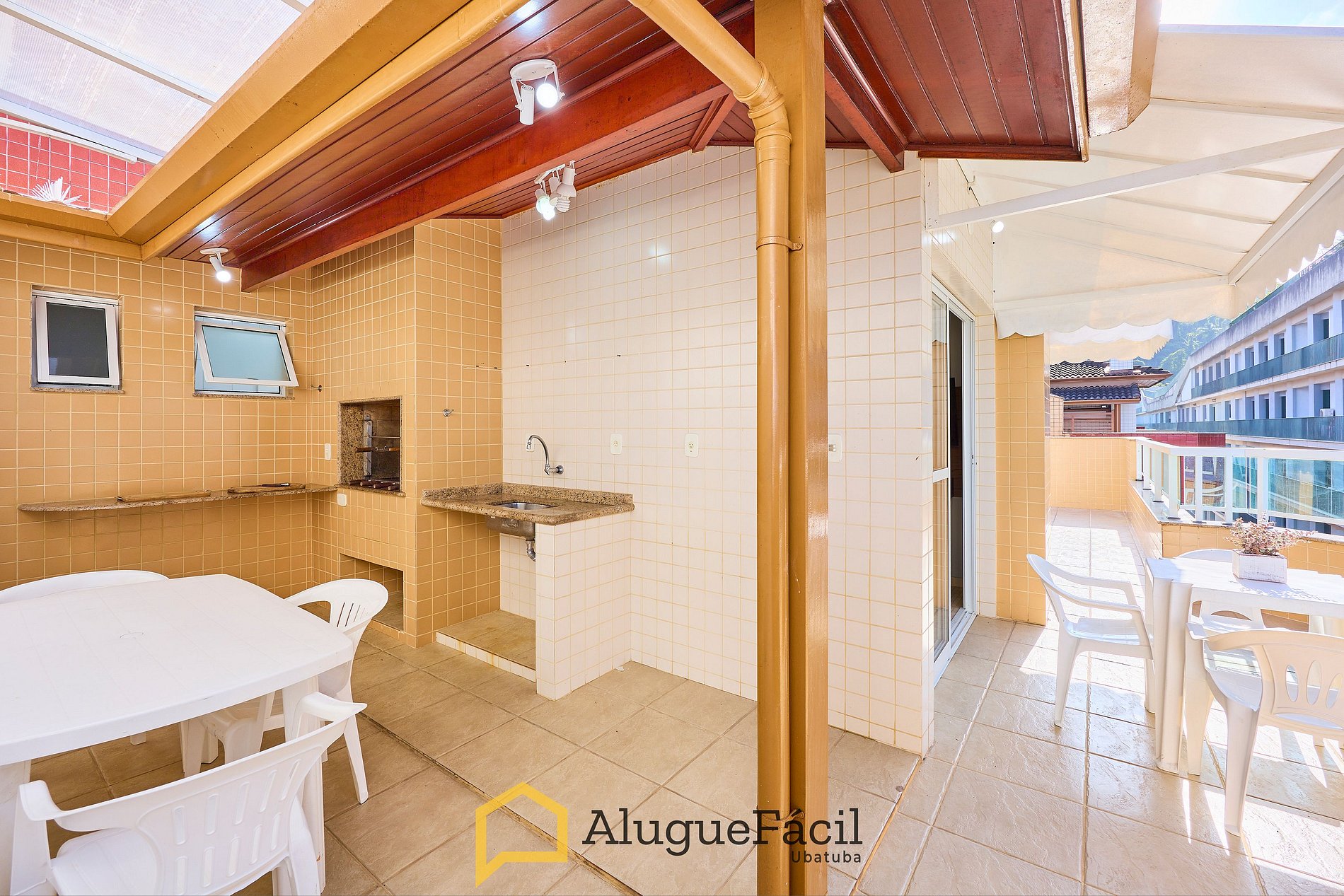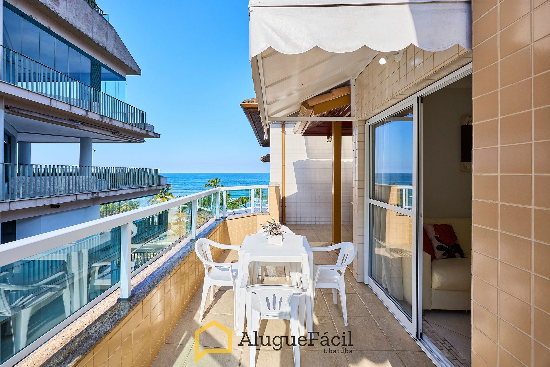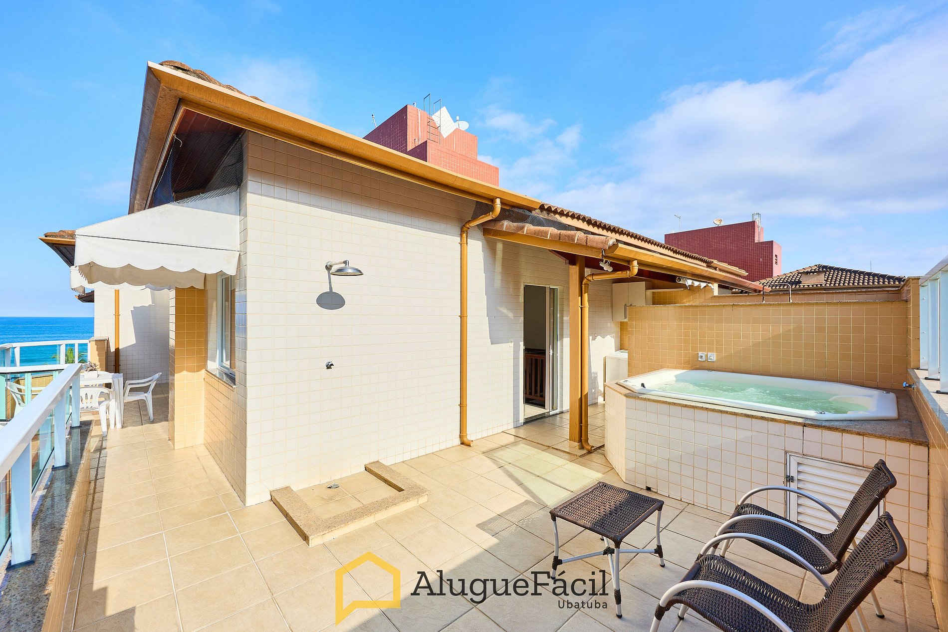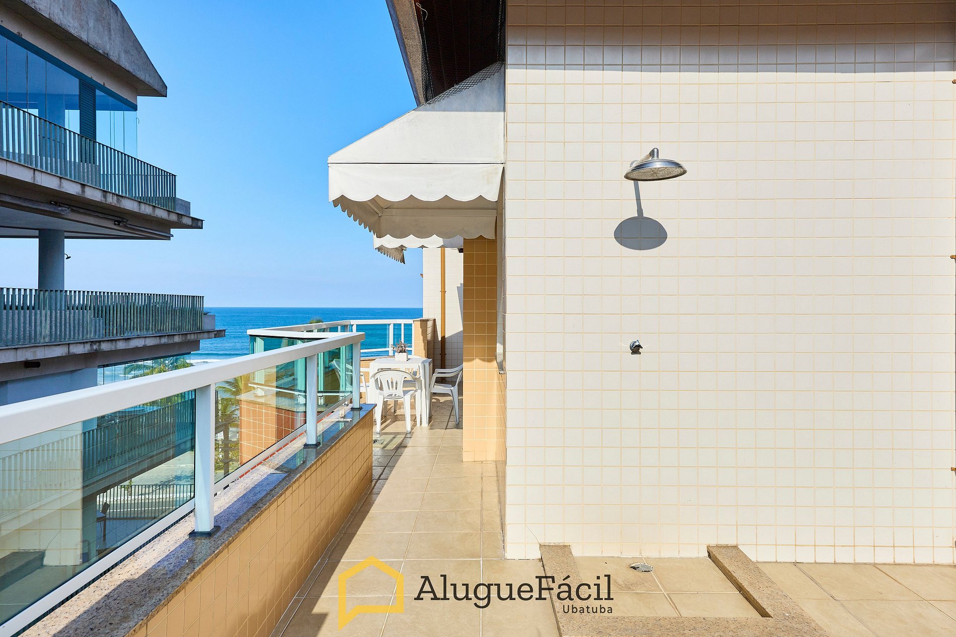 Cobertura Duplex em frente a Praia Grande de Ubatuba com 3 suítes (com ar) + 1 dormitório (com ar) + 1 banheiro + 1 lavado + hidro + churrasqueira + 3 vagas de garagem + Piscina + Sauna. Acomoda até 10 pessoas!
