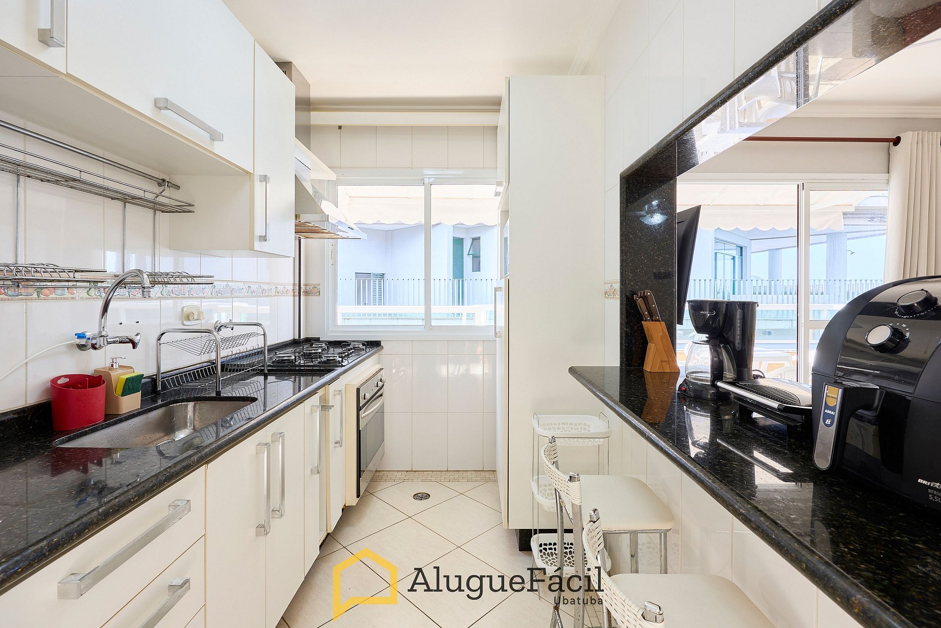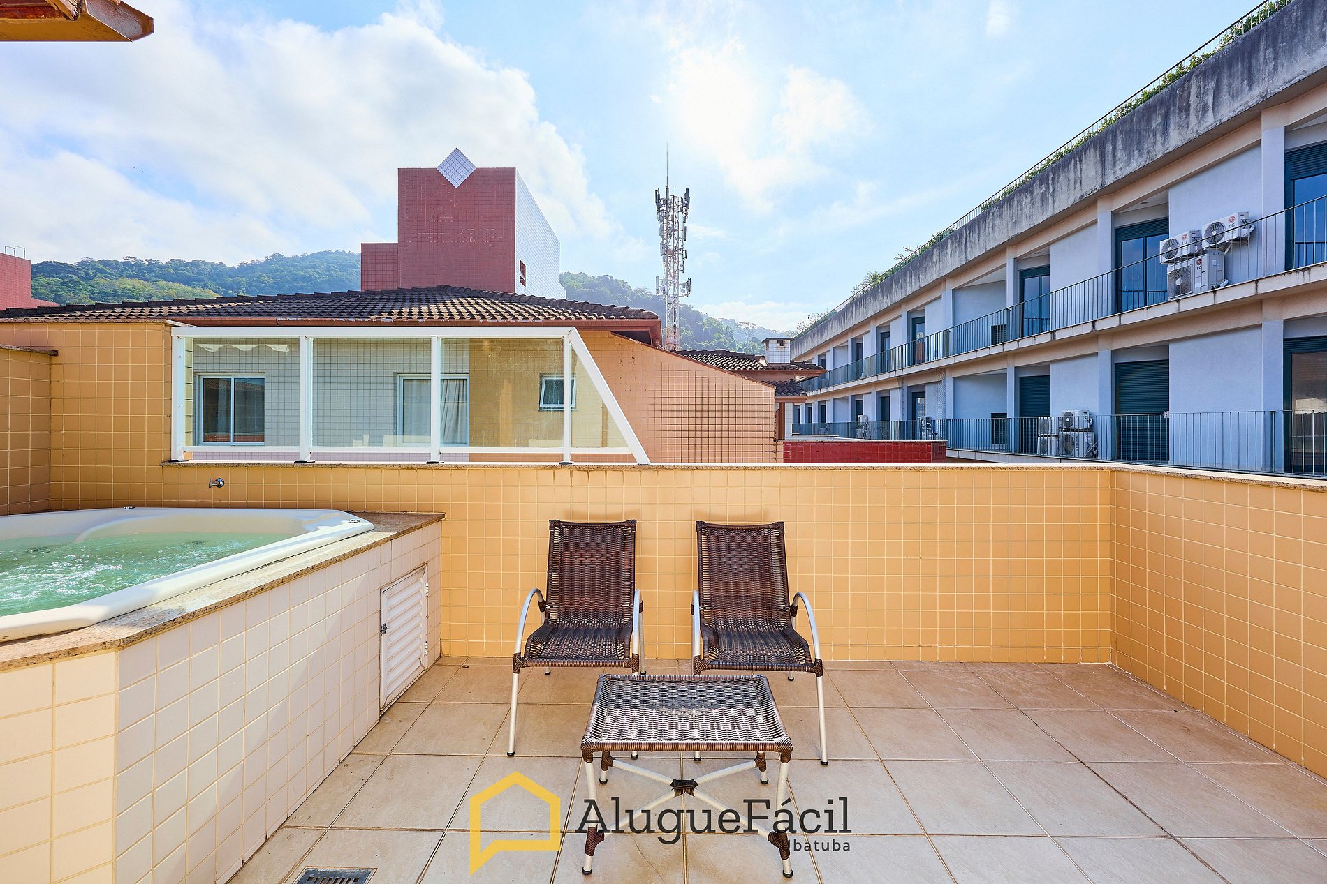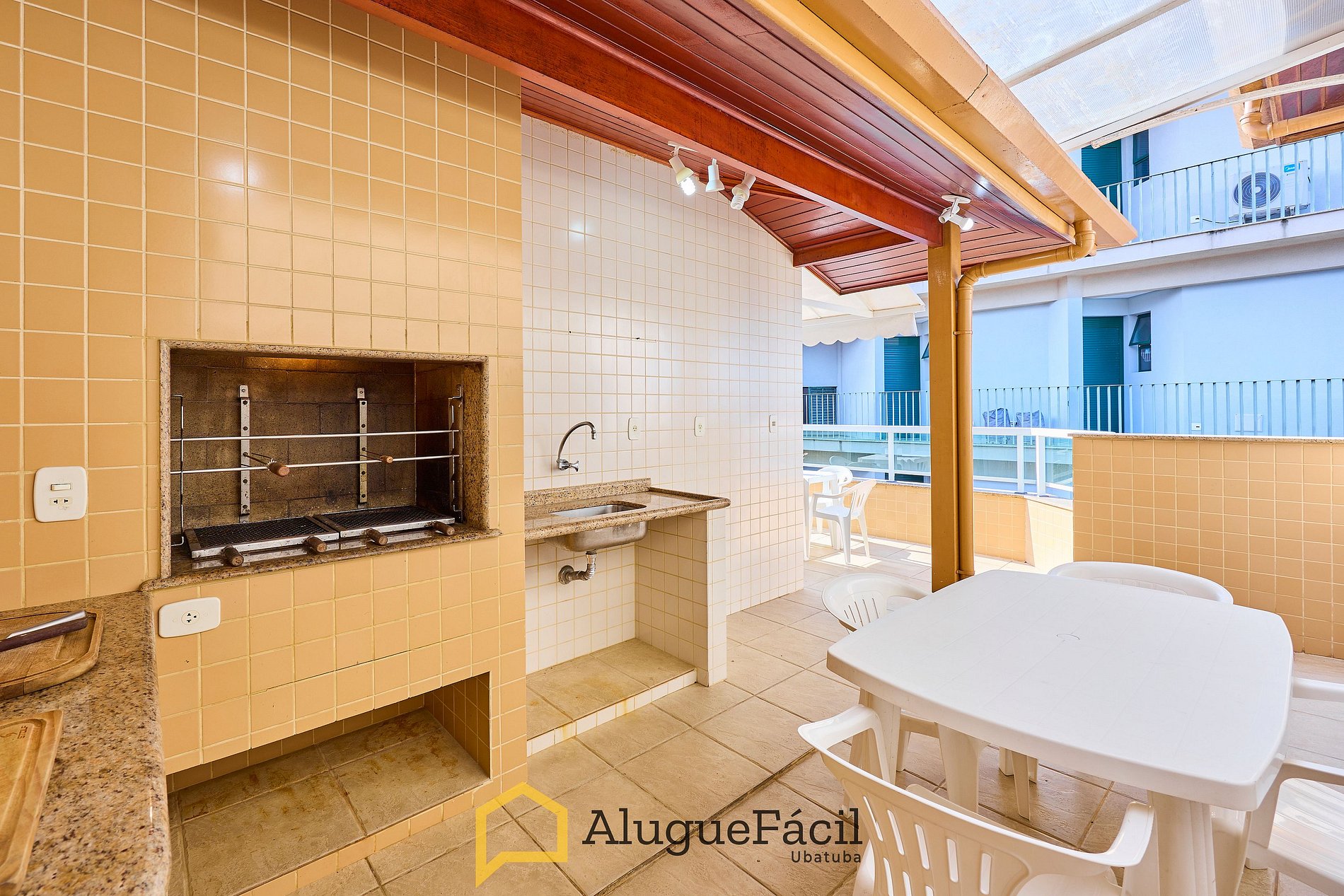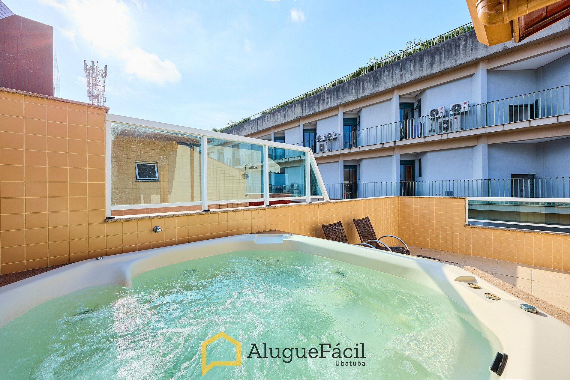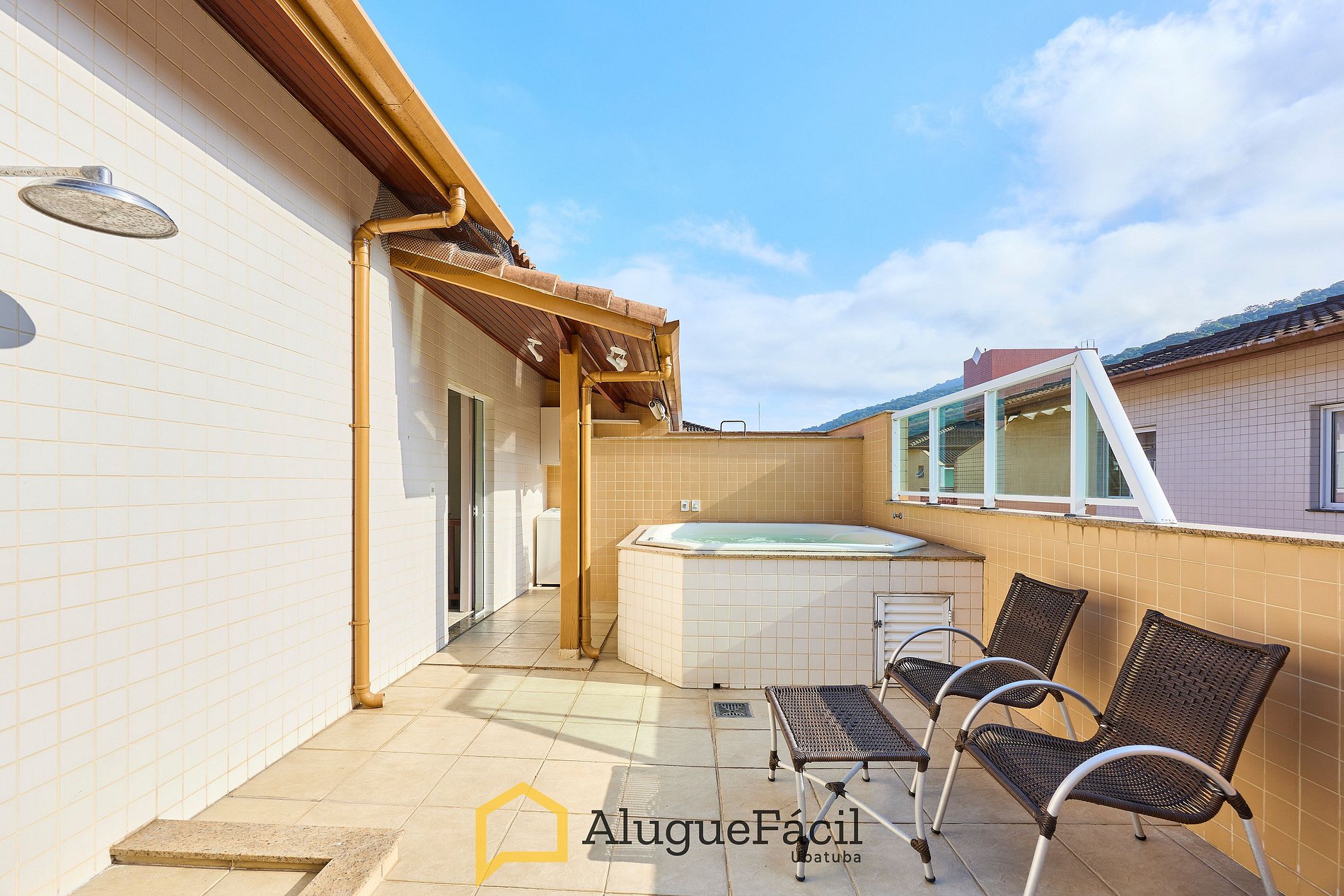 Cobertura Duplex em frente a Praia Grande de Ubatuba com 3 suítes (com ar) + 1 dormitório (com ar) + 1 banheiro + 1 lavado + hidro + churrasqueira + 3 vagas de garagem + Piscina + Sauna. Acomoda até 10 pessoas!