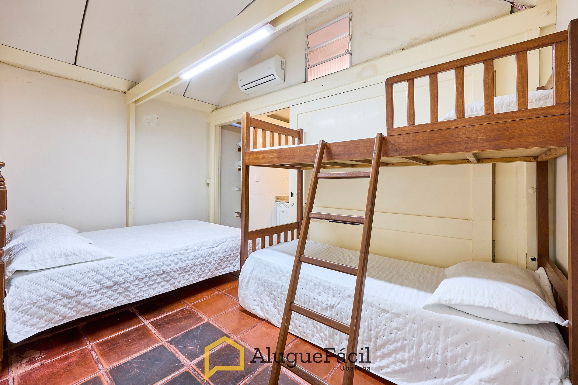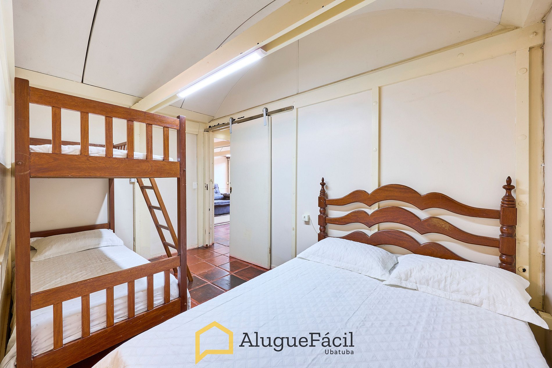 1 suíte com cama queen e 1 beliche