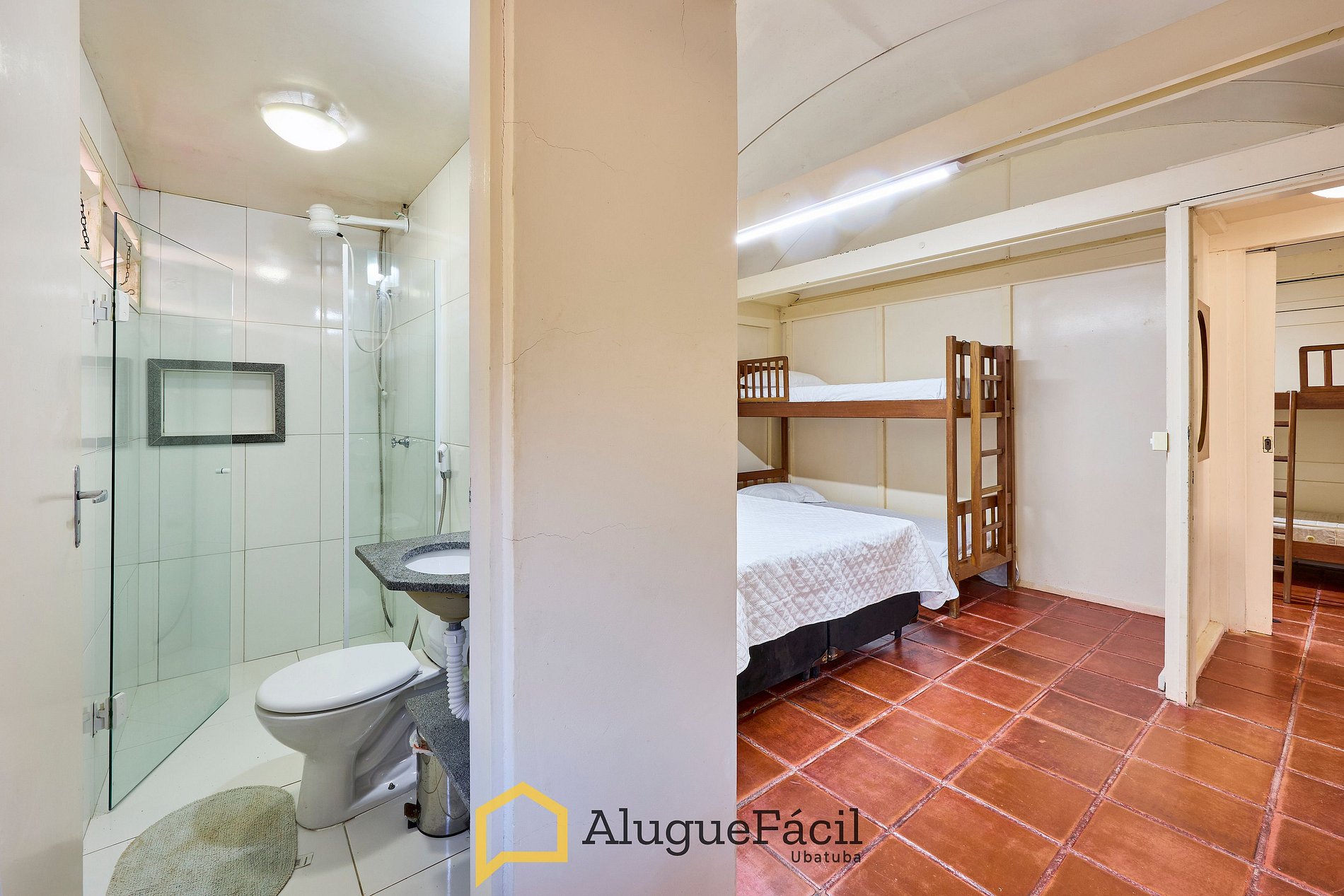 1 suíte com cama casal e 1 beliche
