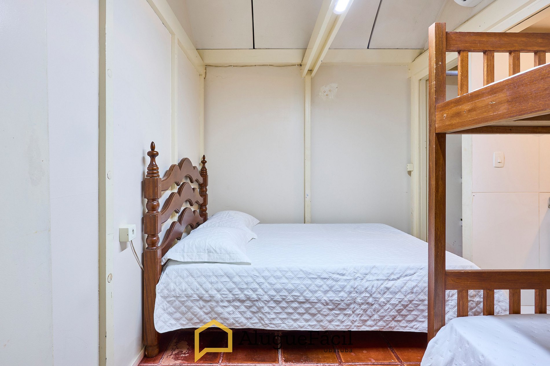 1 suíte com cama casal e 1 beliche