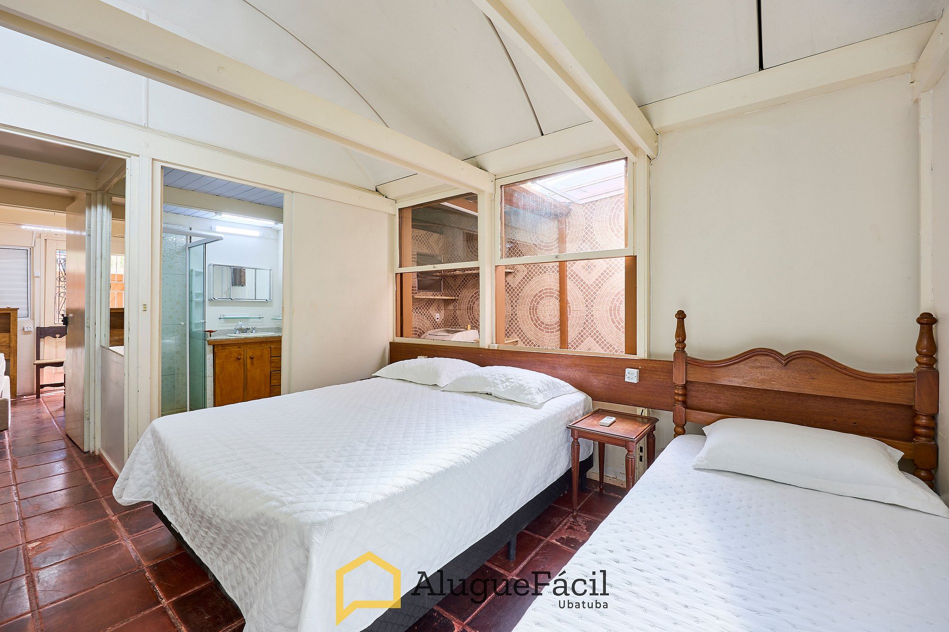1 suíte com cama queen e 2 camas de solteiro