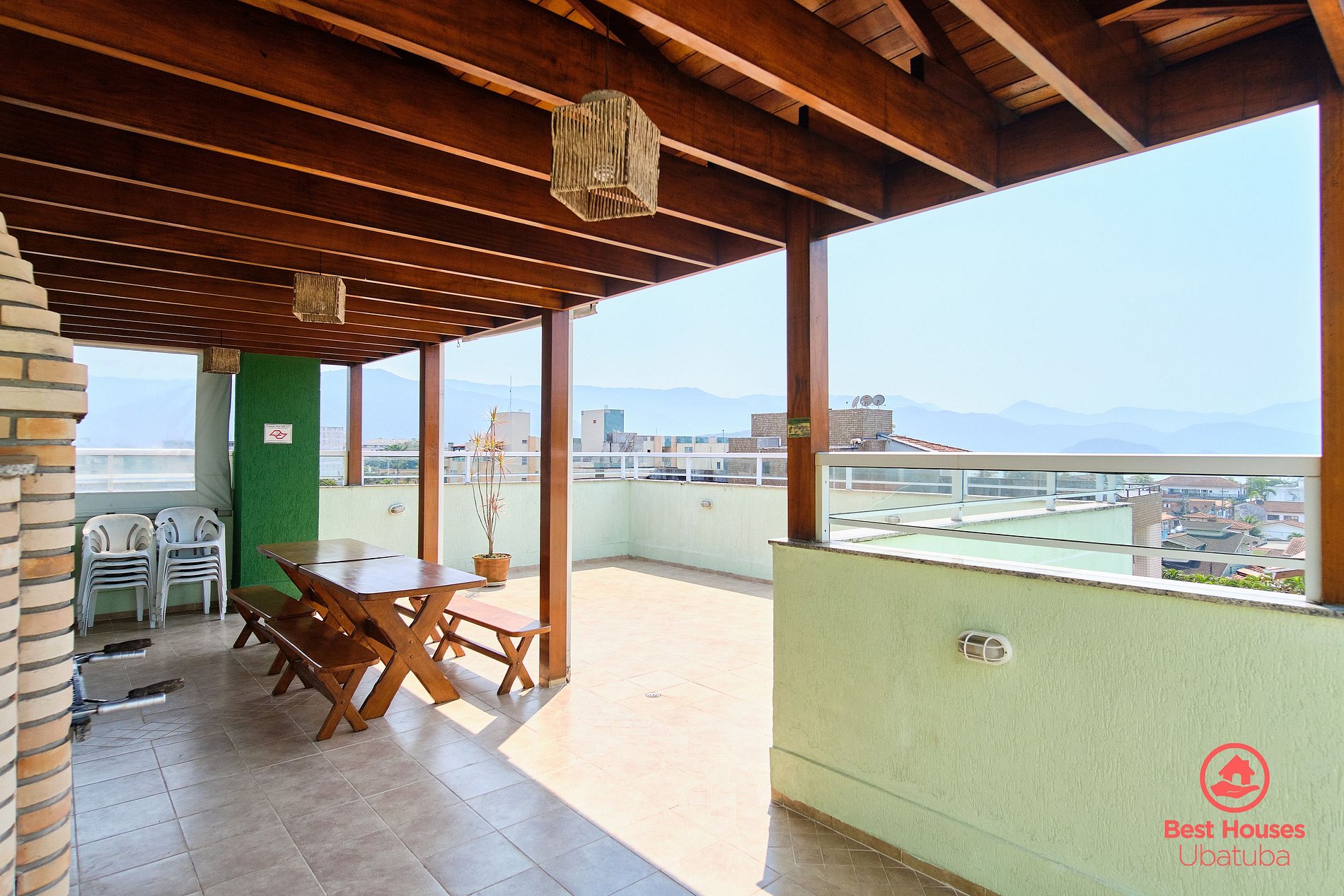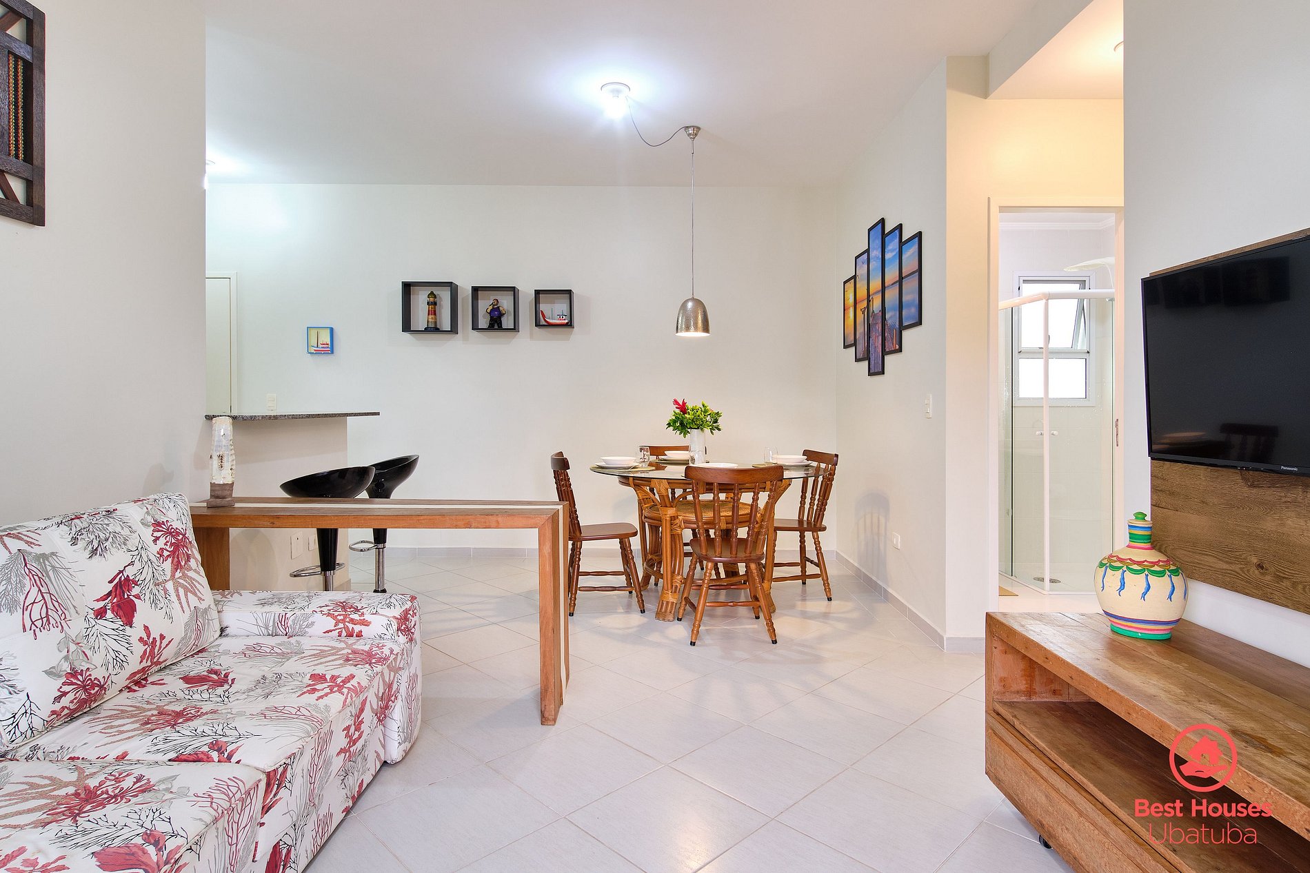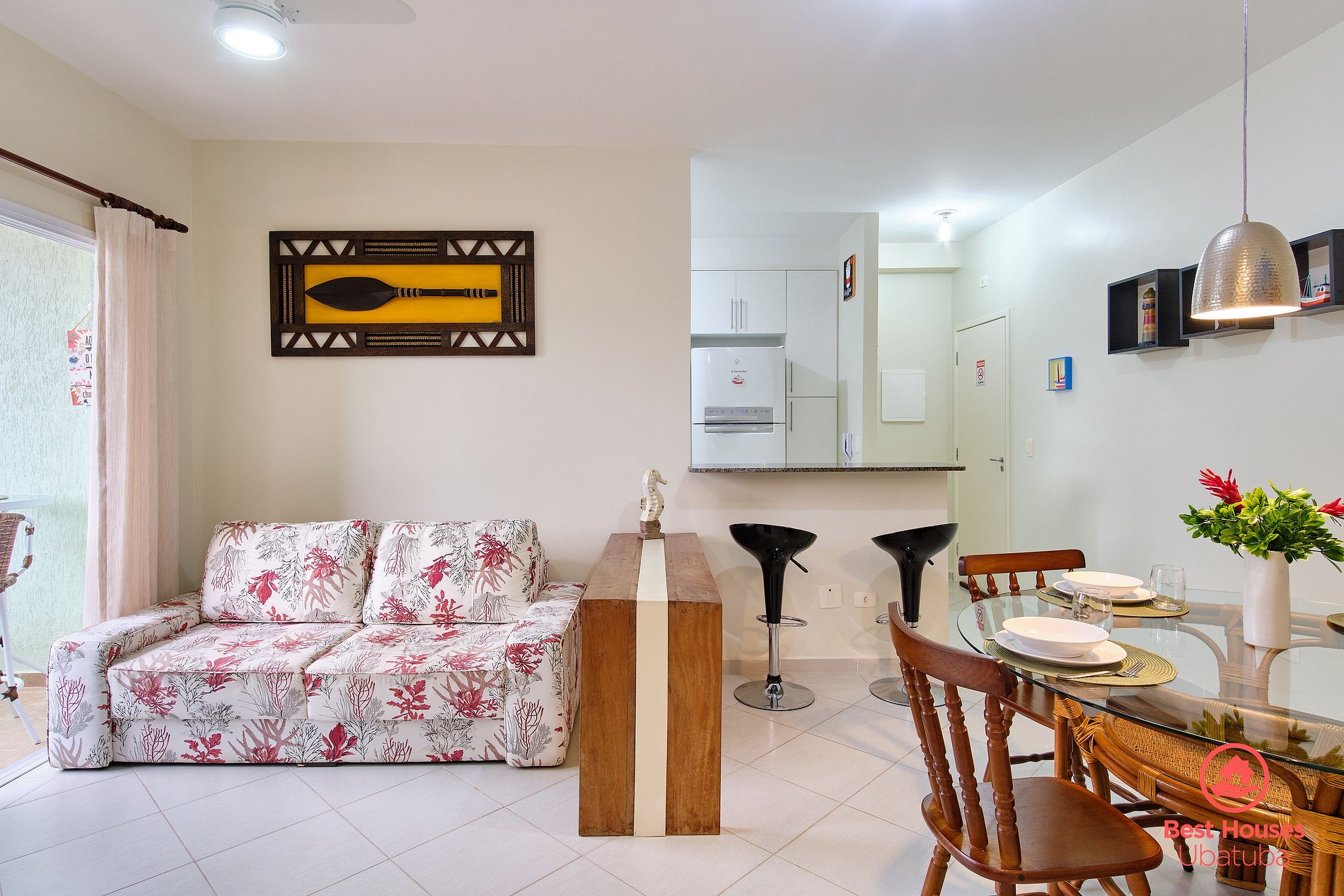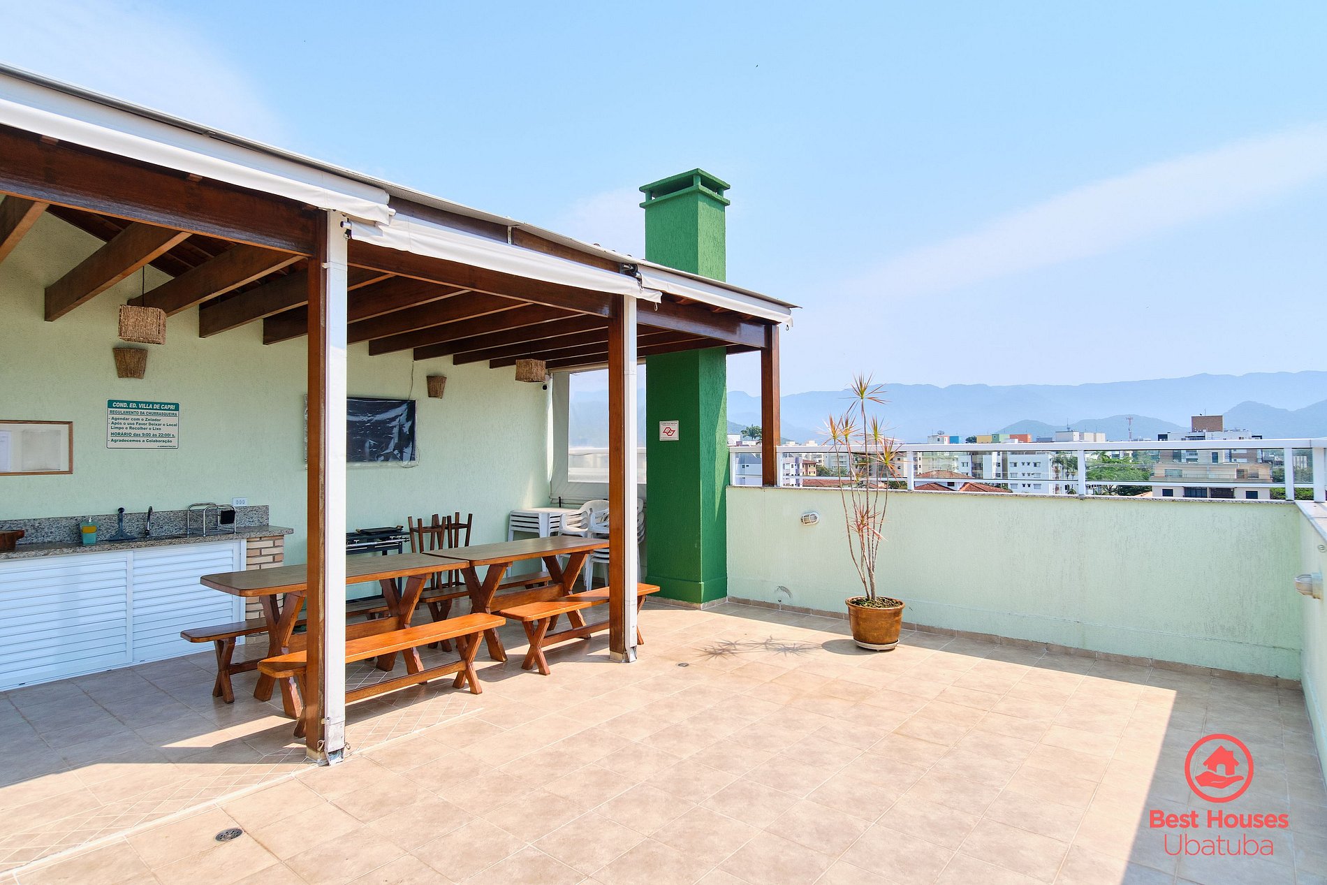 Localizado em um local super tranquilo em uma das regiões mais procuradas e valorizadas de Ubatuba. Apartamento super completo com 2 dormitórios sendo uma suíte e mais um banheiro, ar condicionado em ambos os quartos, wi-fi, sala e cozinha amplas e uma deliciosa varanda com churrasqueira! O condomínio oferece uma vaga coberta com portão automático, piscina na cobertura com uma linda vista e um espaço gourmet. Excelente opção para quem quer fica perto do comércio, praias e vida noturna!