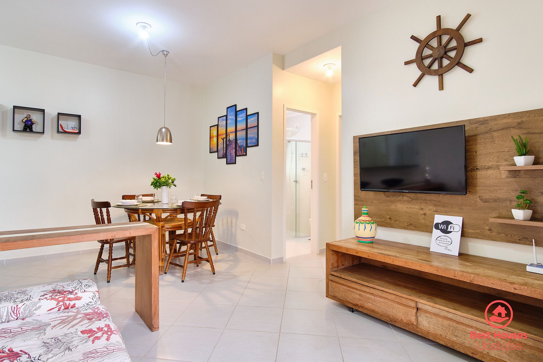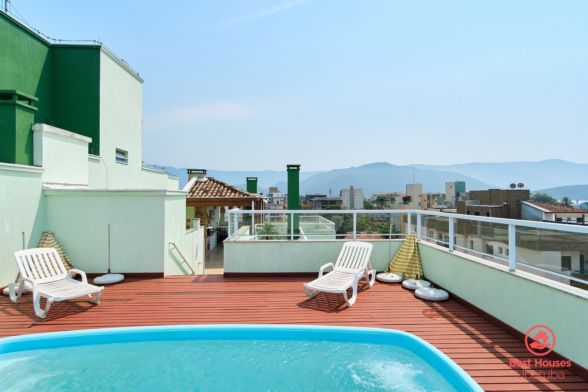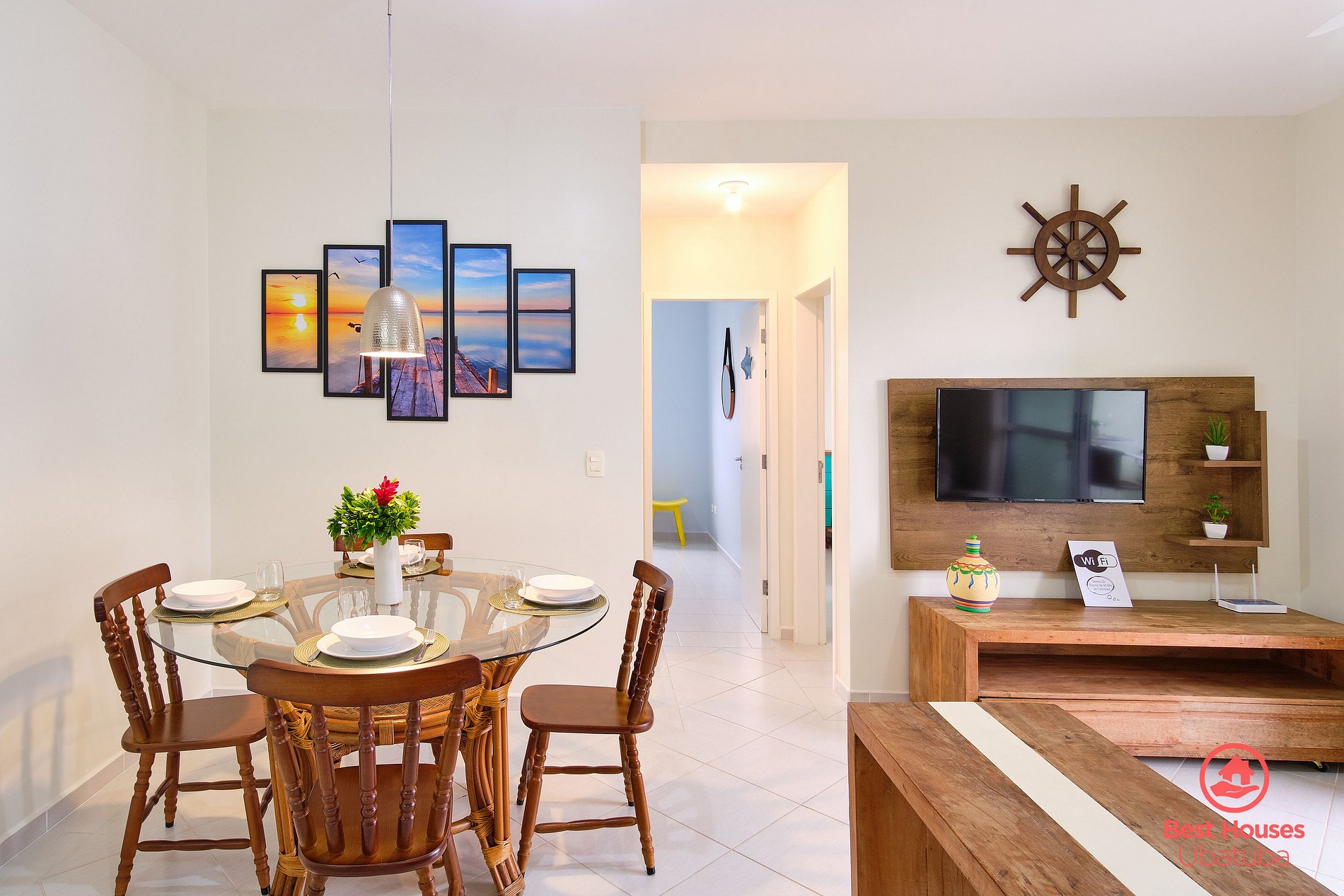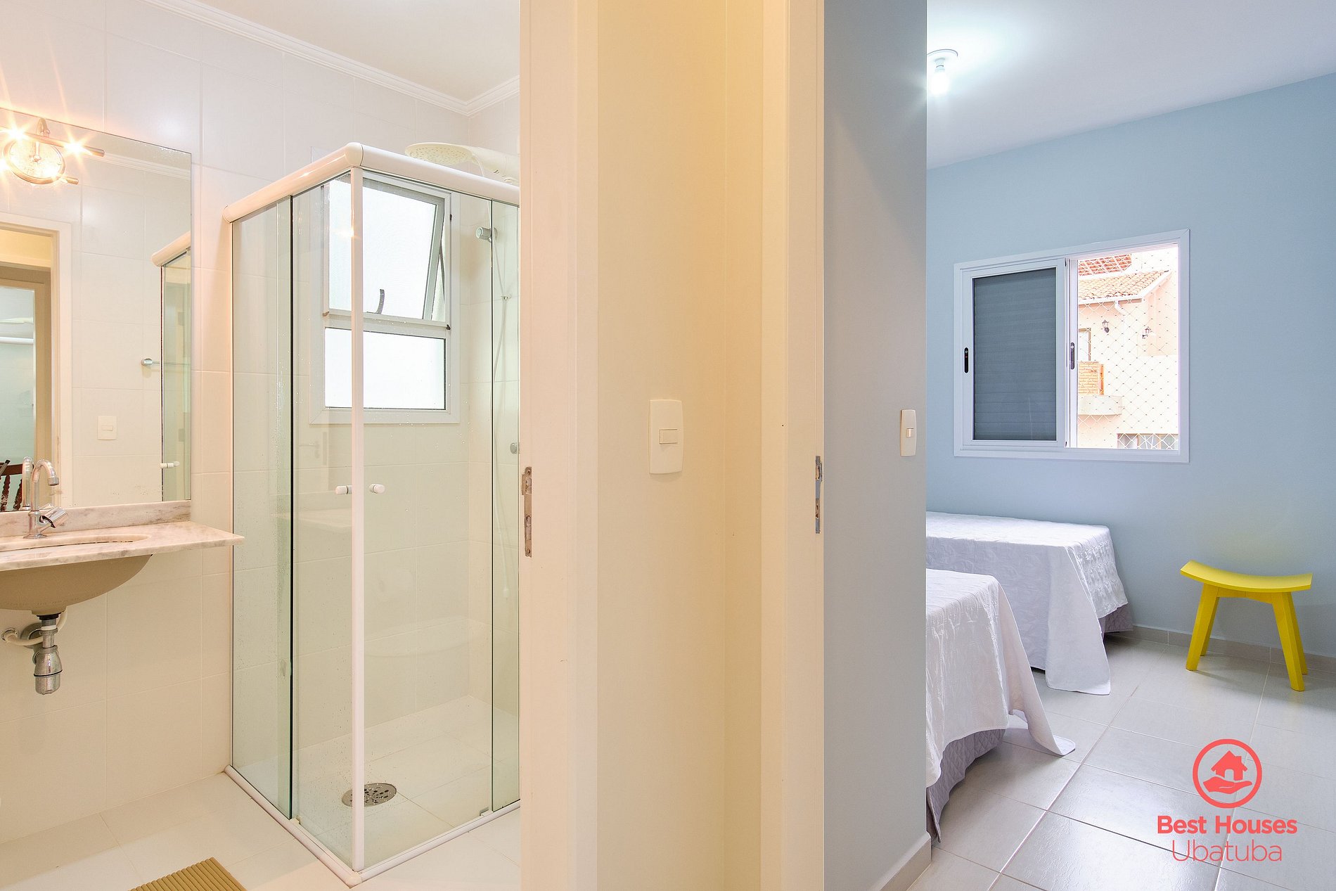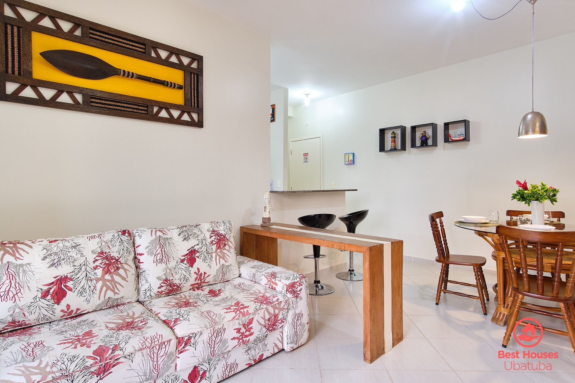 Localizado em um local super tranquilo em uma das regiões mais procuradas e valorizadas de Ubatuba. Apartamento super completo com 2 dormitórios sendo uma suíte e mais um banheiro, ar condicionado em ambos os quartos, wi-fi, sala e cozinha amplas e uma deliciosa varanda com churrasqueira! O condomínio oferece uma vaga coberta com portão automático, piscina na cobertura com uma linda vista e um espaço gourmet. Excelente opção para quem quer fica perto do comércio, praias e vida noturna!